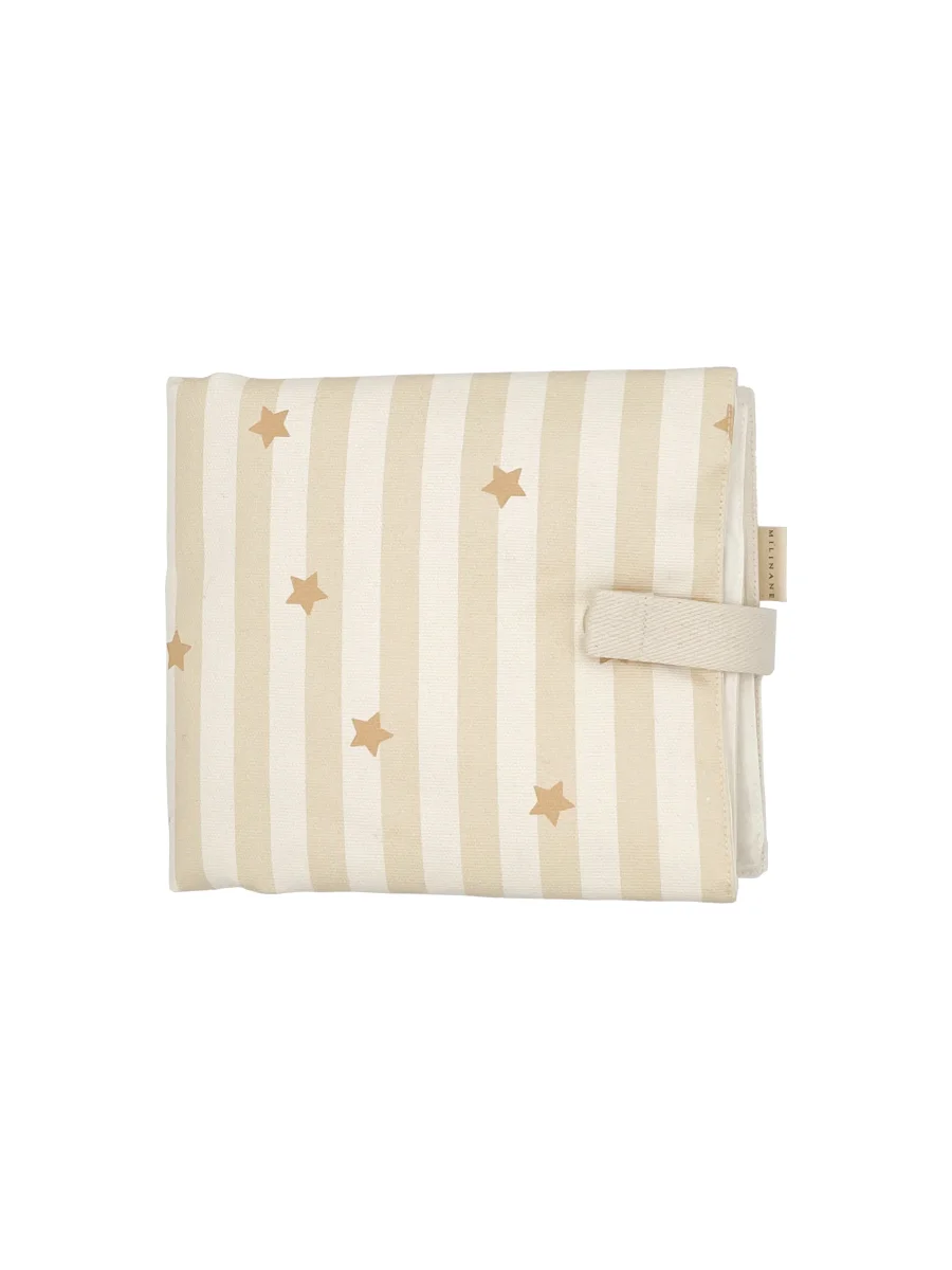 Matelas à langer de voyage molletonné imprimé Popcorn Poche zippée pour mettre couches et lingettes Fermeture : bouton aimanté Extérieur: 100% canevas de coton Intérieur imperméable en coton enduit Rembourrage : 100% polyester Dimensions : L58 x l44 cm