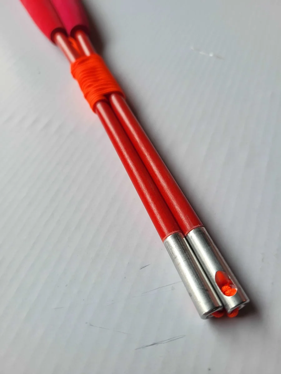 Les baguettes en fibre de verre sont plus rigides (plus précises) et moins lourd que les baguettes en alu.