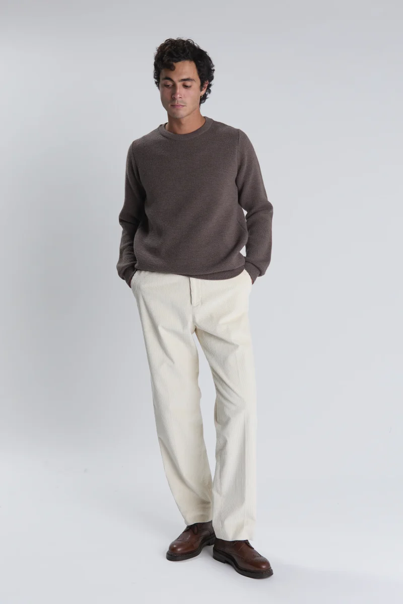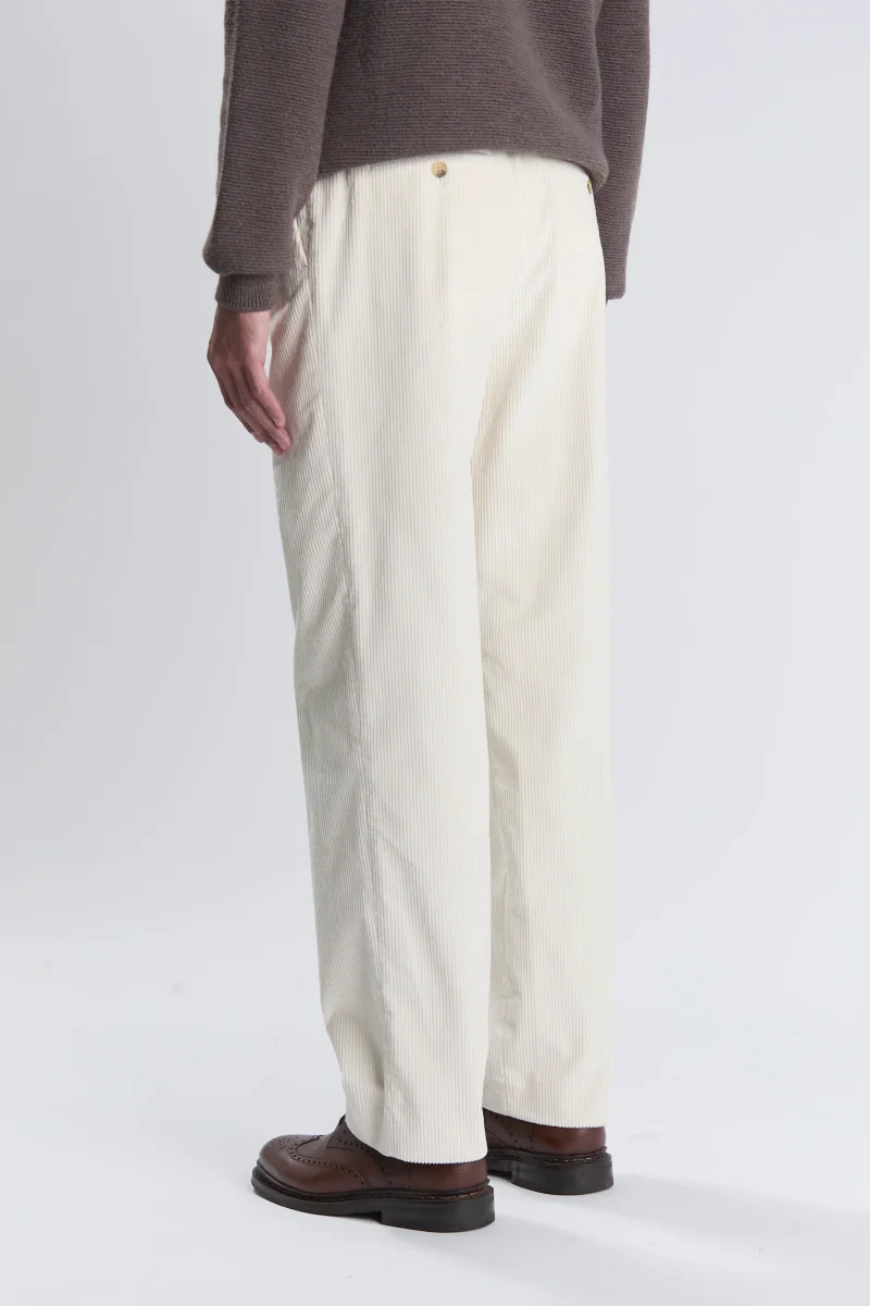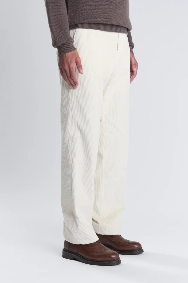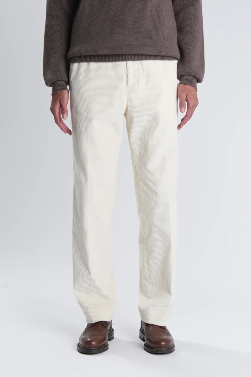 Illuminez vos tenues de saison avec le pantalon Belleville, confectionné dans un velours côtelé italien au coloris écru éclatant.