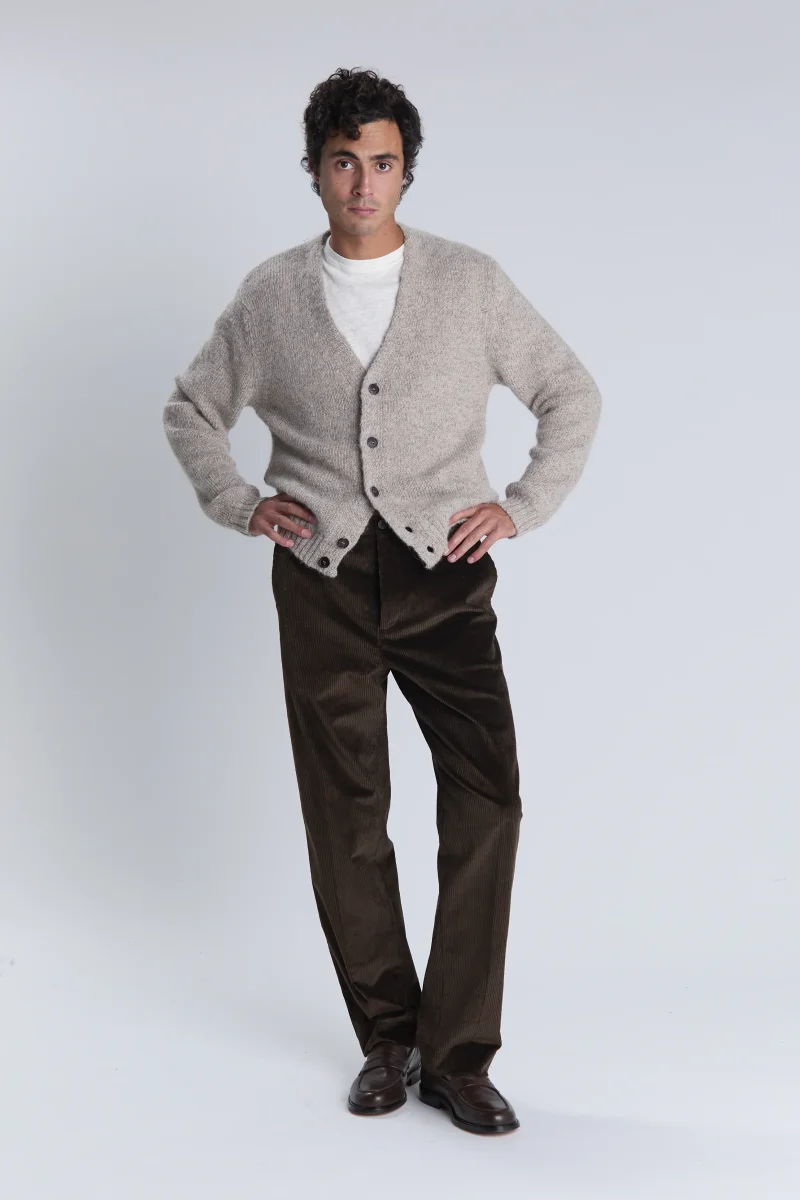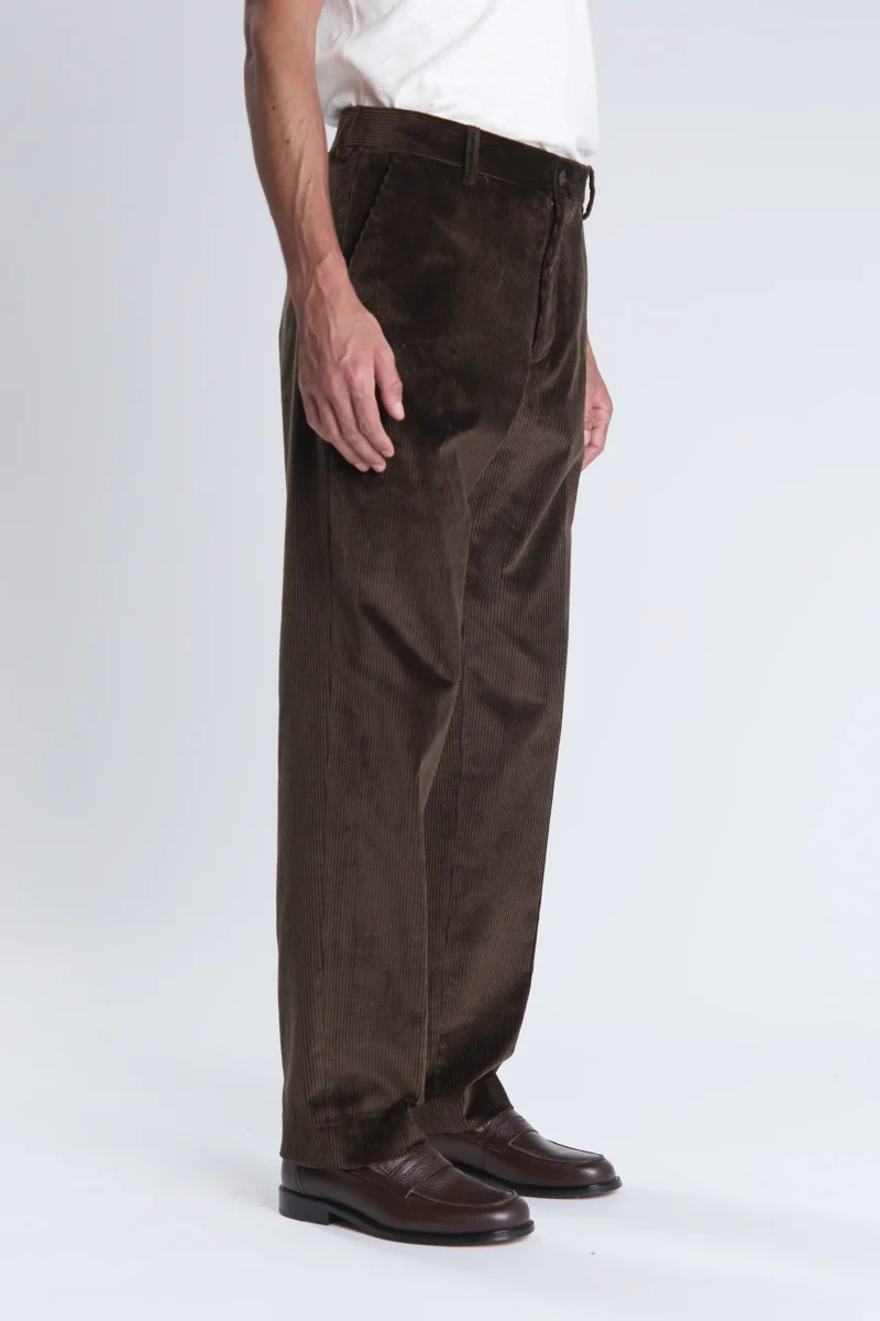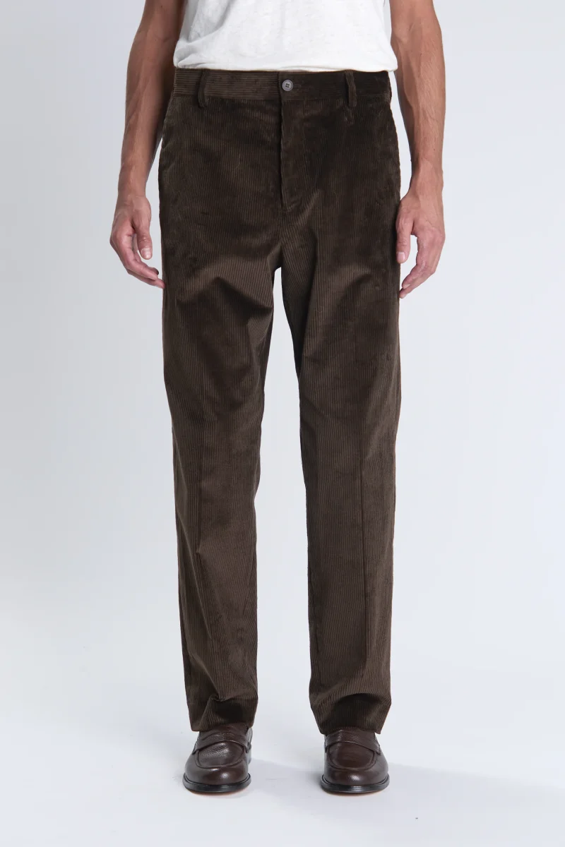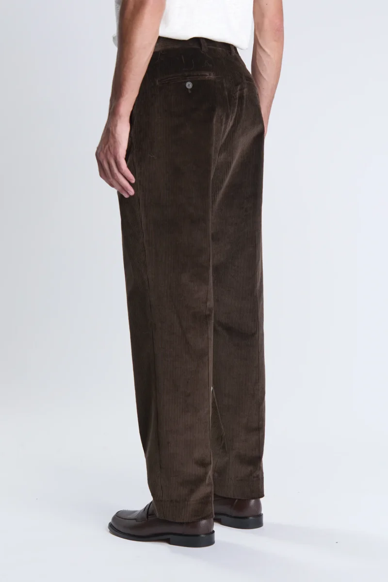Il est confectionné dans un velours côtelé italien d’une grande douceur au profond coloris marron chocolat, parfaitement adapté à la saison, avec une pointe d’élasthanne dans l’étoffe pour une pointe d’aisance supplémentaire.
