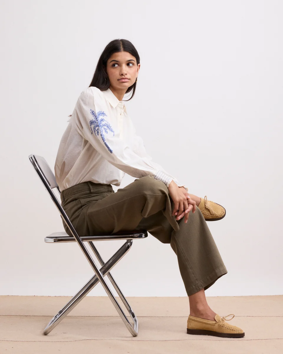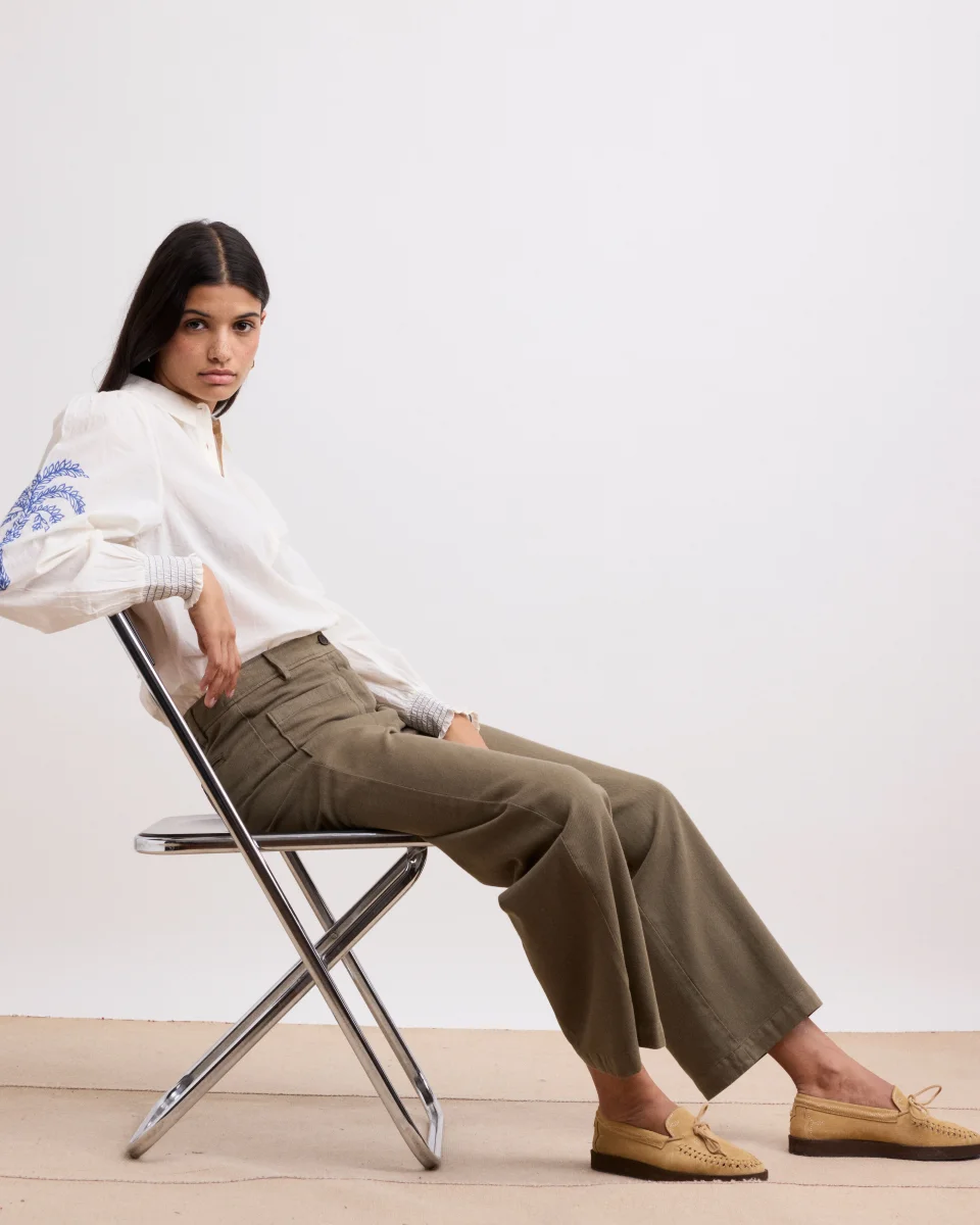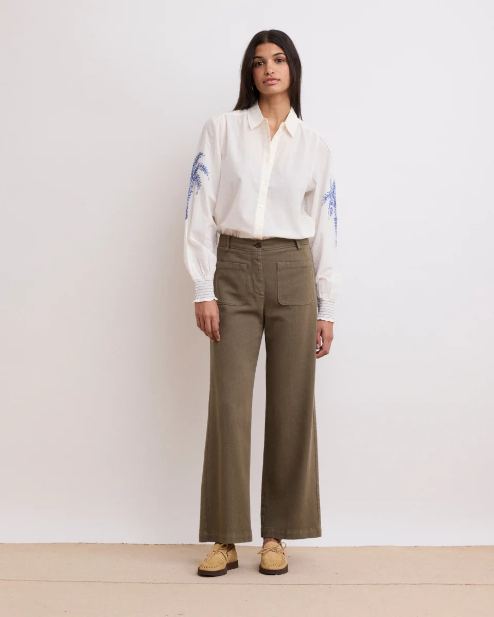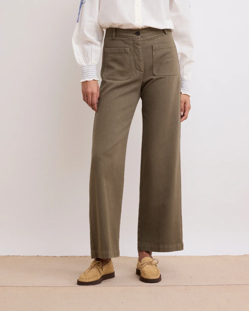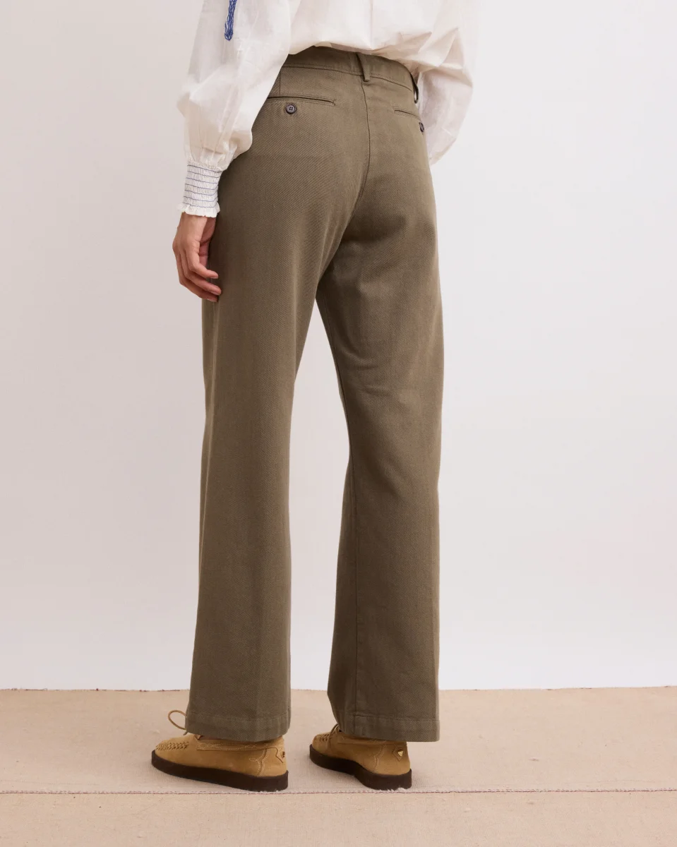 Pantalon Femme en Lyocell & Coton Vert Militaire Poli