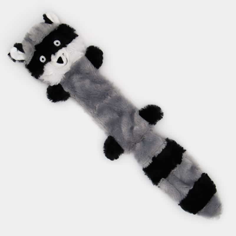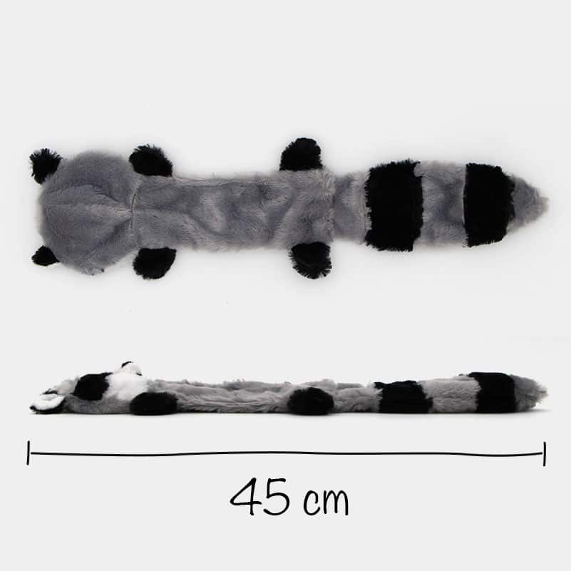 Cette peluche douce en forme de lémurien gris, noire et blanc, ne contient aucun rembourrage. Un couineur, intégré dans le corps de la peluche, émettra un bruit pour le plus grand plaisir de votre chien pendant le jeu. Le couinement stimulera votre chien et lui donnera encore plus l’envie de jouer avec sa peluche !