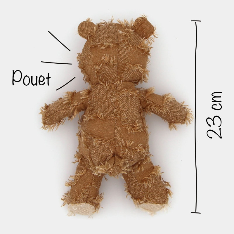 Avec son look un peu grunge, cette peluche ours, de couleur moutarde, fera le bonheur de votre chien. Cette peluche sera le compagnon idéal de votre chien et ne manquera pas de couiner pour le stimuler pendant le jeu…