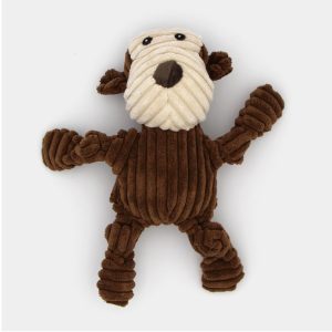 Conçue en tissu avec des coutures, cette peluche est idéale pour les moments de câlins ou de jeu modéré. Elle n’est pas adaptée aux chiens ayant tendance à déchiqueter leurs jouets.
