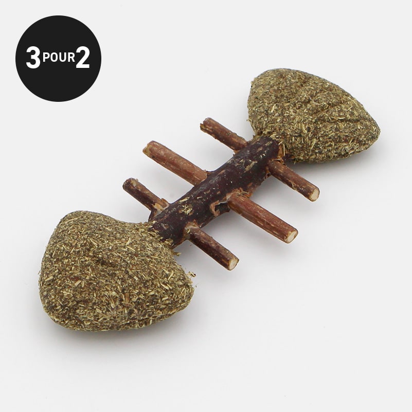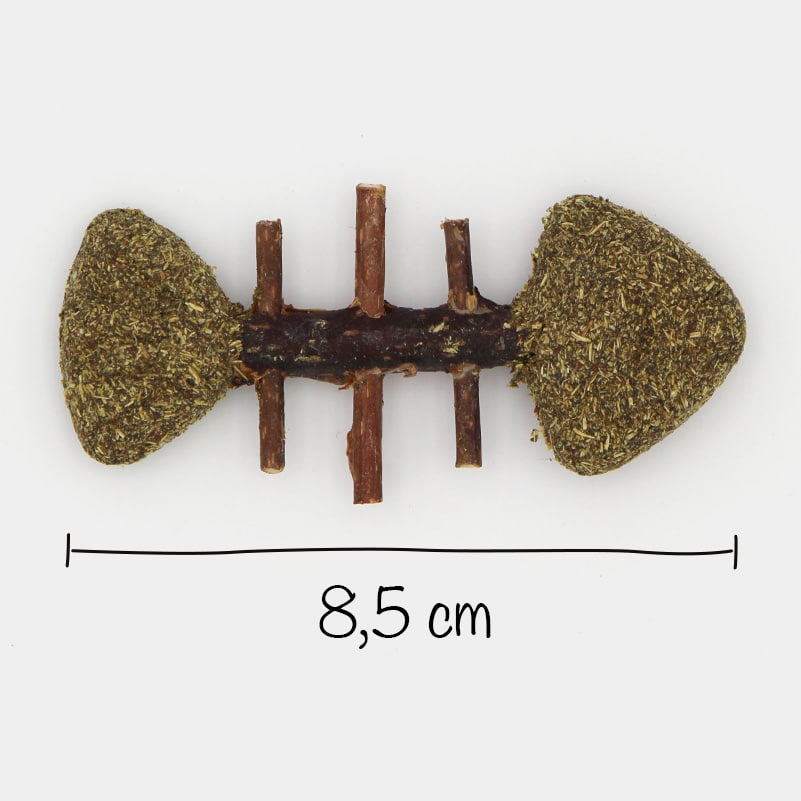 Une arête de poisson constituée de cataire et de matatabi dont l’odeur attirera irrésistiblement votre chat et provoquera sur lui un effet euphorisant !