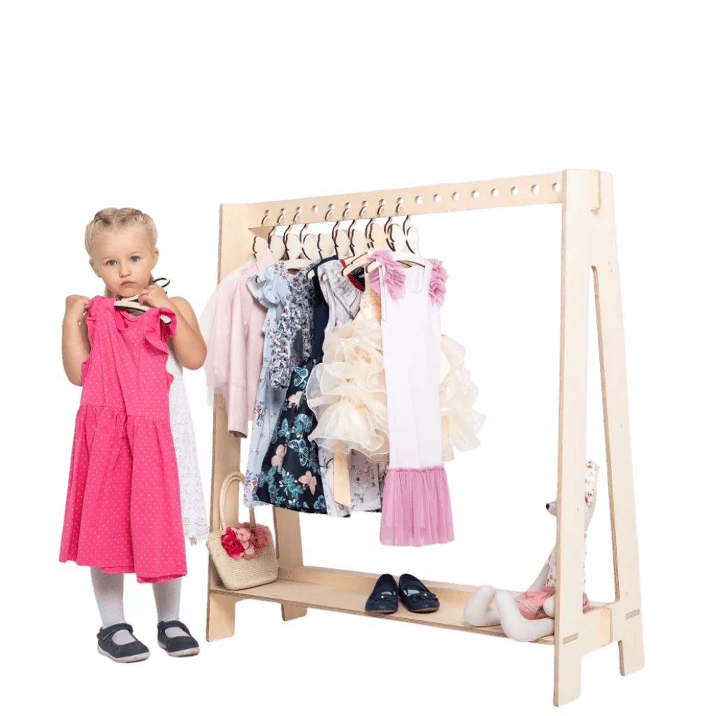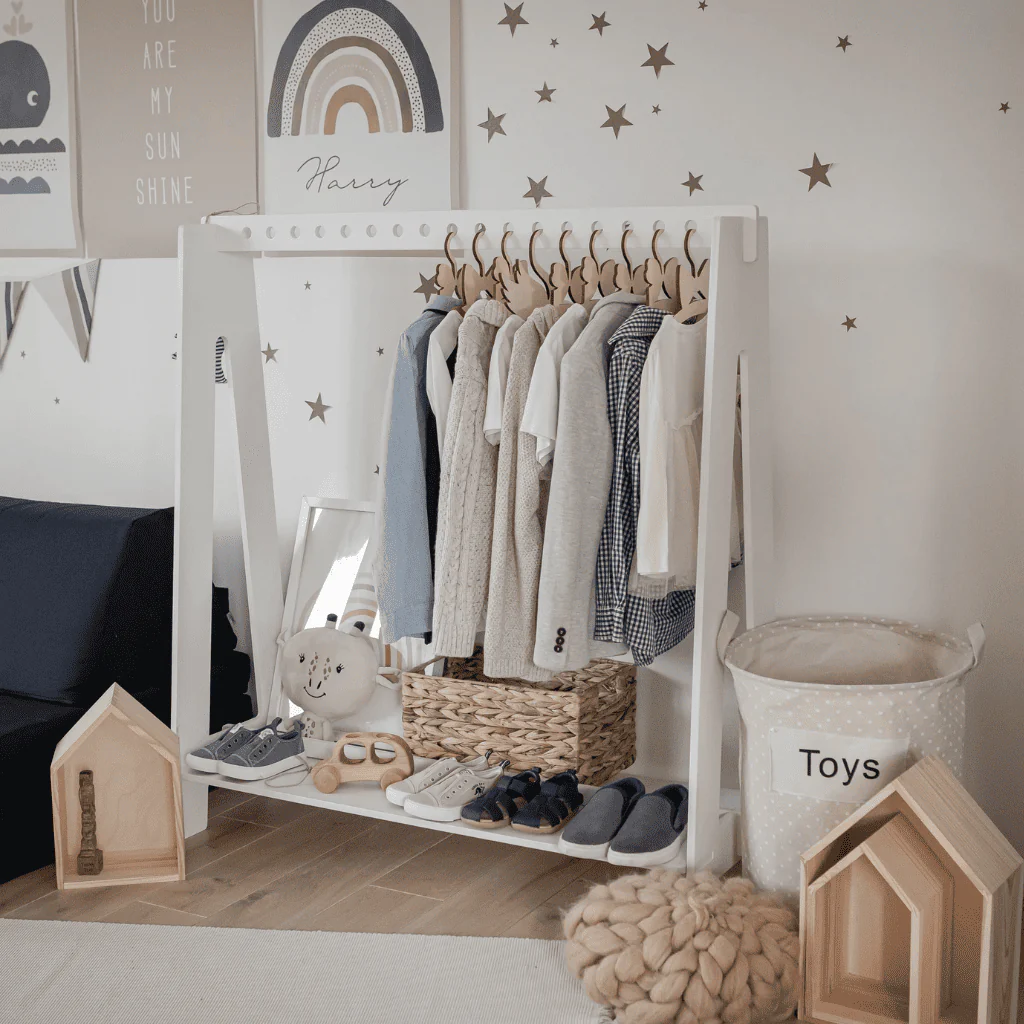 Idéal pour ranger ou exposer les adorables tenues de votre enfant, ce portant combine élégance et praticité.