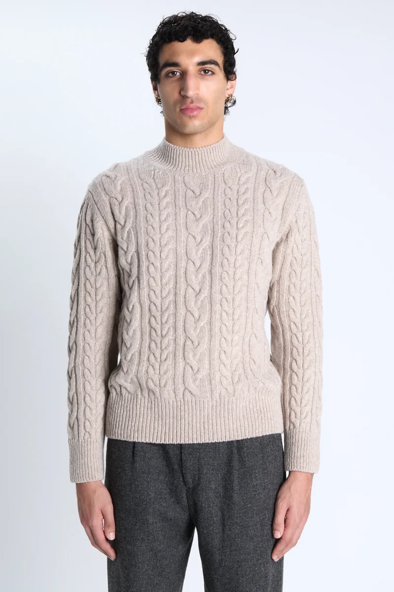 Le pull Molene enrichit vos tenues du charme des pulls marins irlandais avec ses torsades tricotées en Italie. Nous le revisitons avec un col cheminée qui vous distingue discrètement tout en couvrant votre cou.