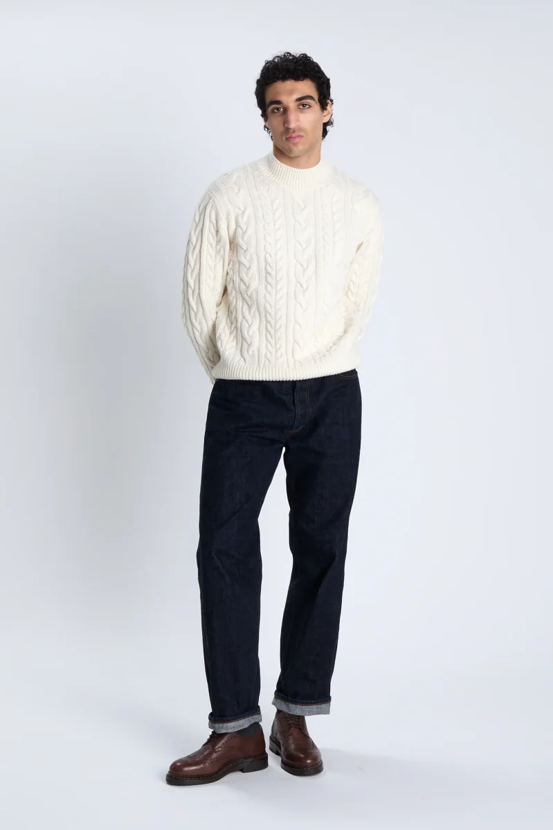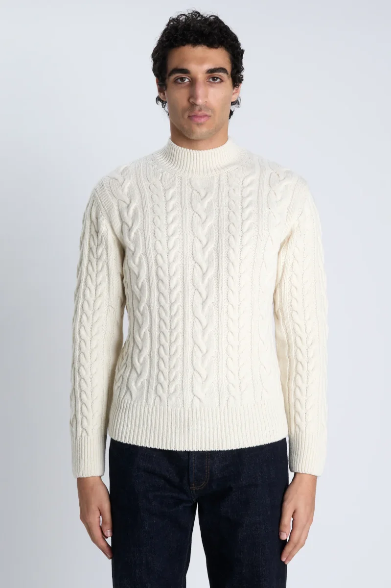 Le pull Molene enrichit vos tenues du charme des pulls marins irlandais avec ses torsades tricotées en Italie. Nous le revisitons avec un col cheminée qui vous distingue discrètement tout en couvrant votre cou.