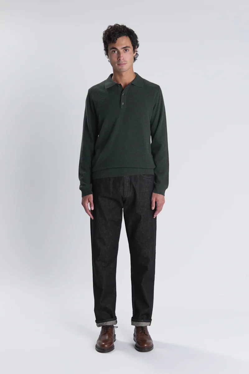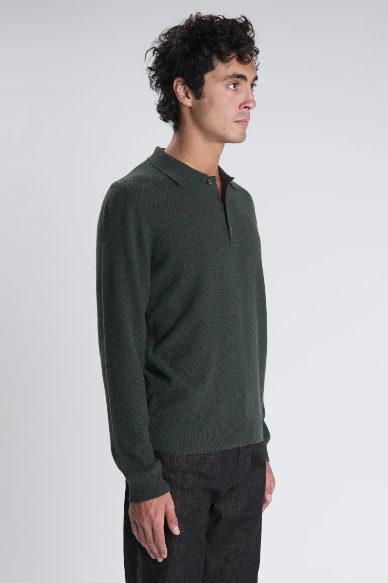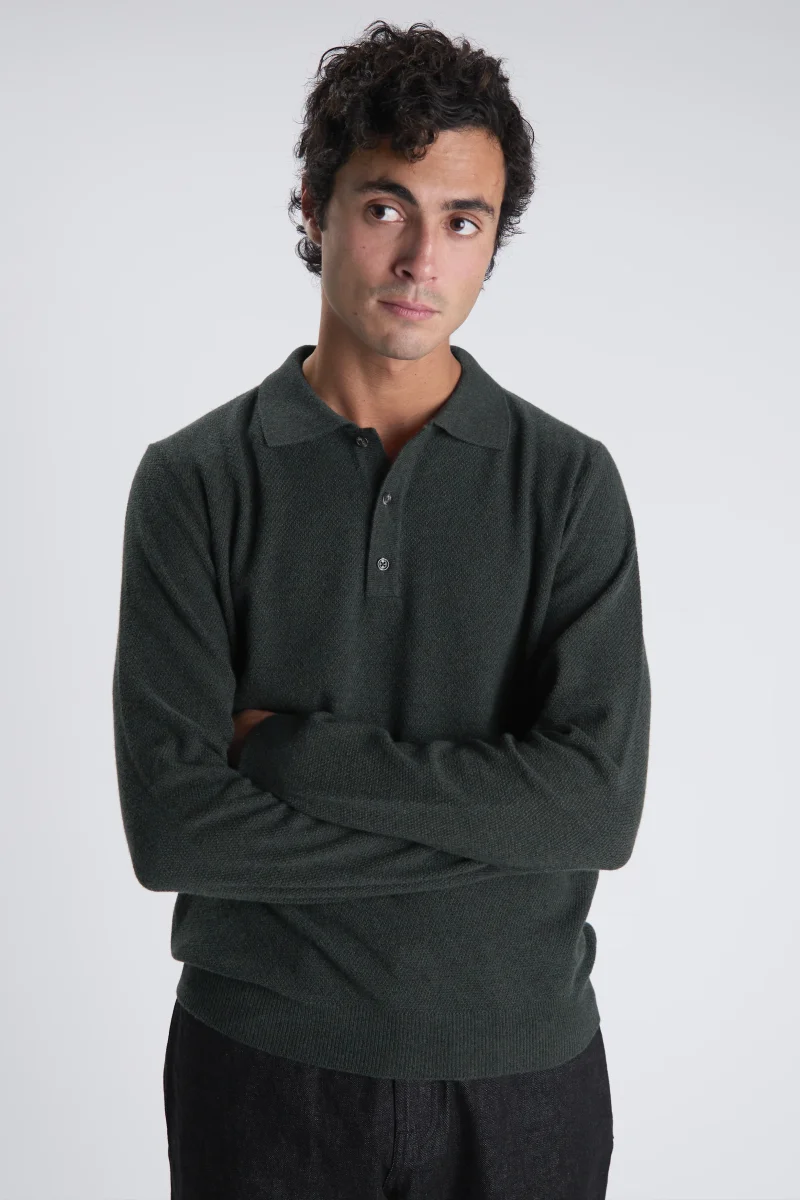 Son profond coloris vert chiné s’insère parfaitement dans un vestiaire d’automne-hiver tandis que son col boutonné vous permet de jouer sur le layering et de gérer efficacement les variations de températures.