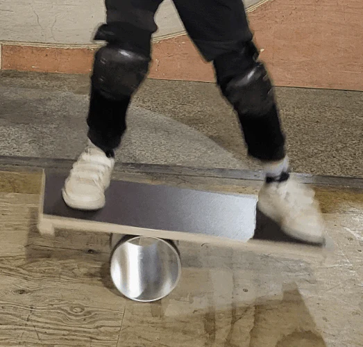 Ce planche d’équilibre mesure 18 mm d’épaisseur, 650 mm de long et 247 mm de large. À chaque extrémité sous la planche, il y a une autre pièce de contreplaqué marin épais ajoutant 18 mm d’épaisseur et 30 mm x 247 mm de long, attaché avec 3 vis. Cela garantit que la planche ne glisse pas du rouleau lorsqu’elle est en équilibre. Le dessus de la planche est recouvert d’une couche antidérapante, toujours dans un souci de sécurité. C’est sans aucun doute la meilleure planche d’équilibre pour le jeu de Rolla Bola que nous avons vendu au cours des 30 dernières années.