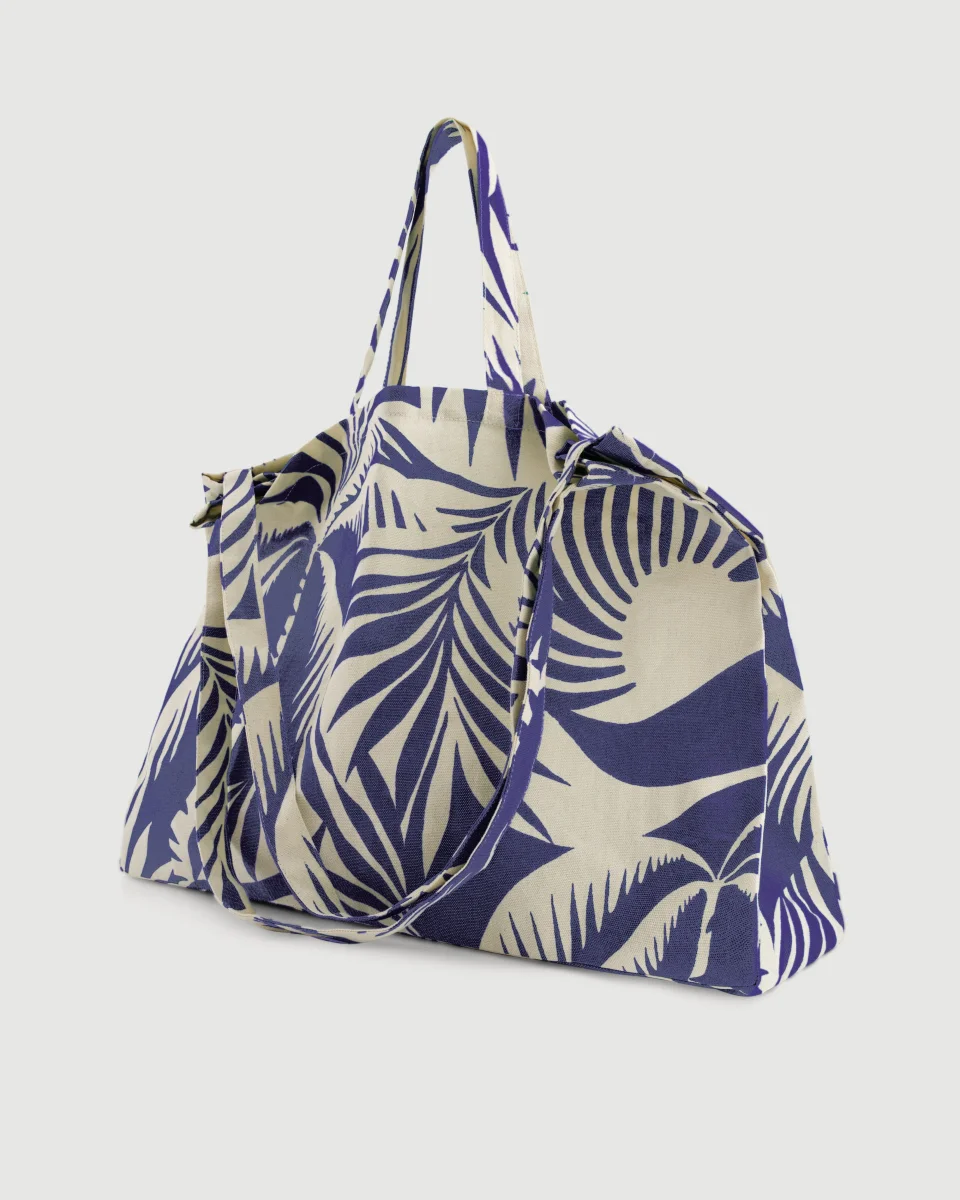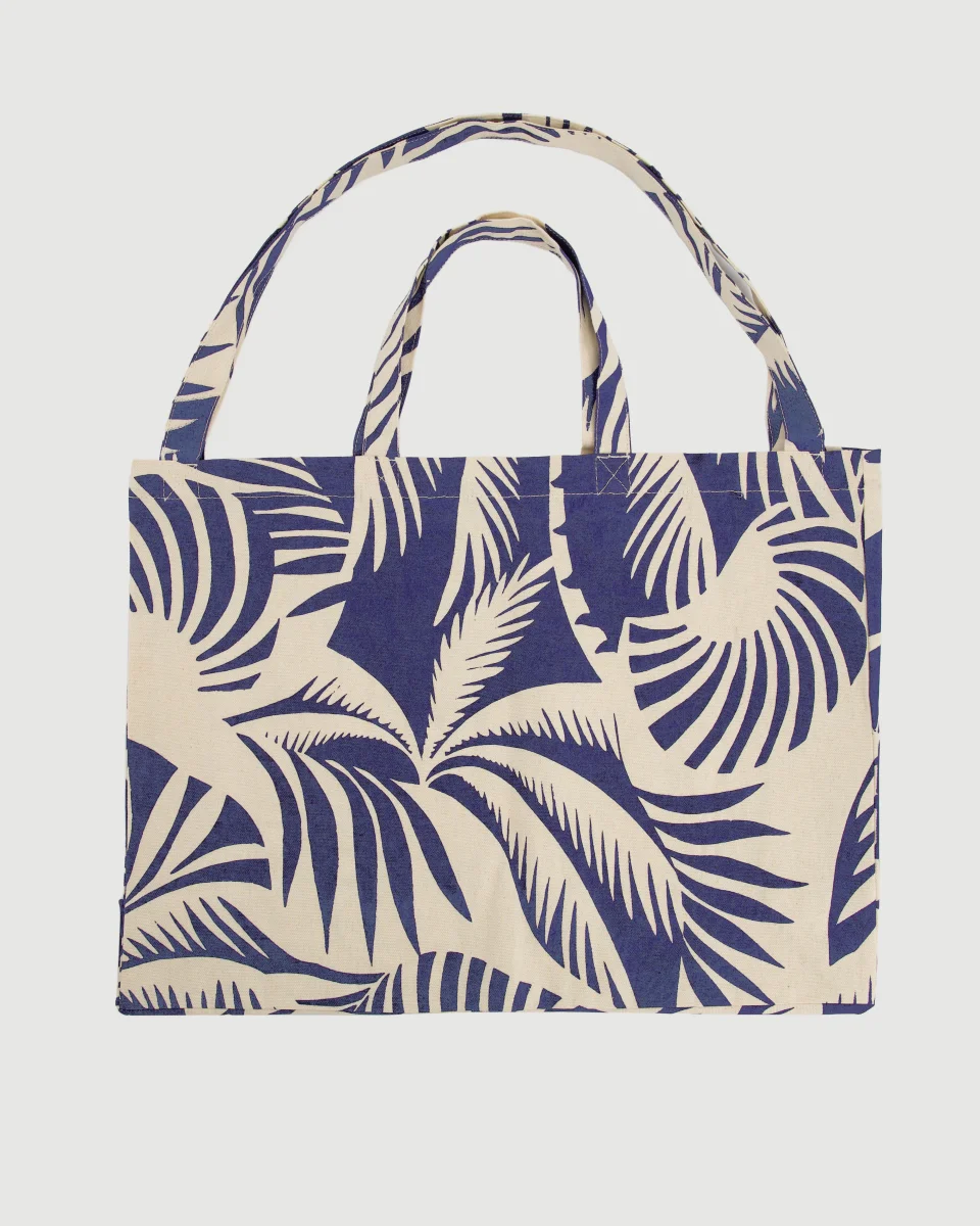 Sac Femme en Coton Imprimé Bleu Palmiers Marine