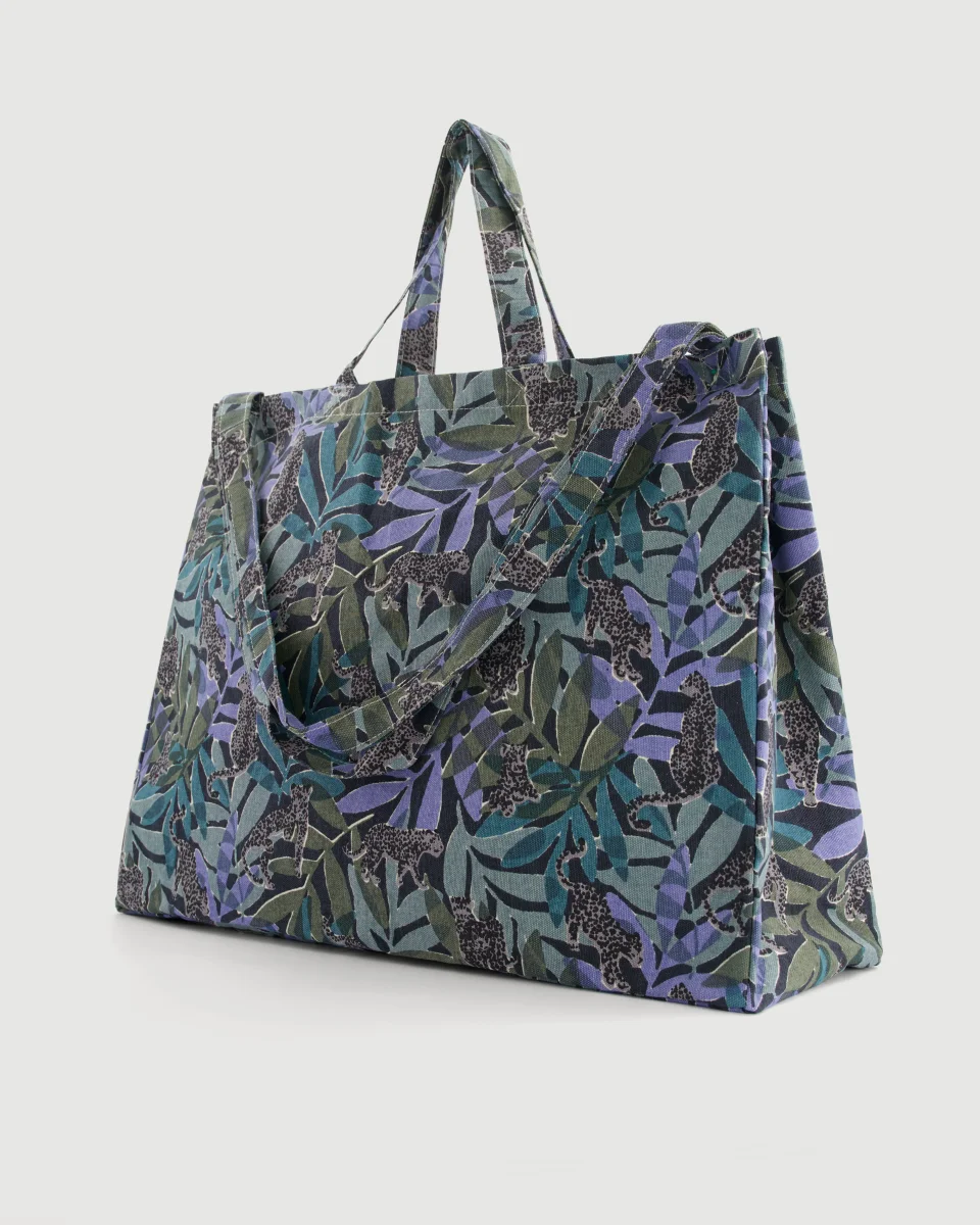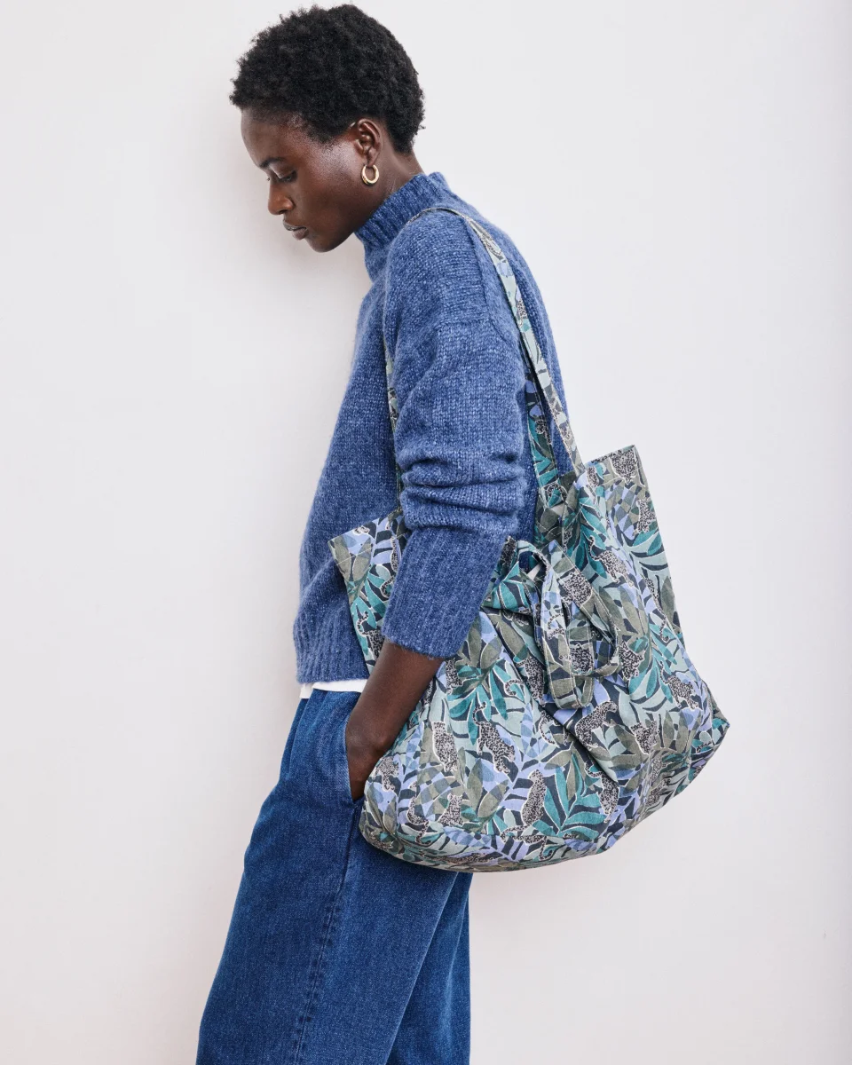 Sac Femme en Coton Imprimé Jungle Bleu Large Bag