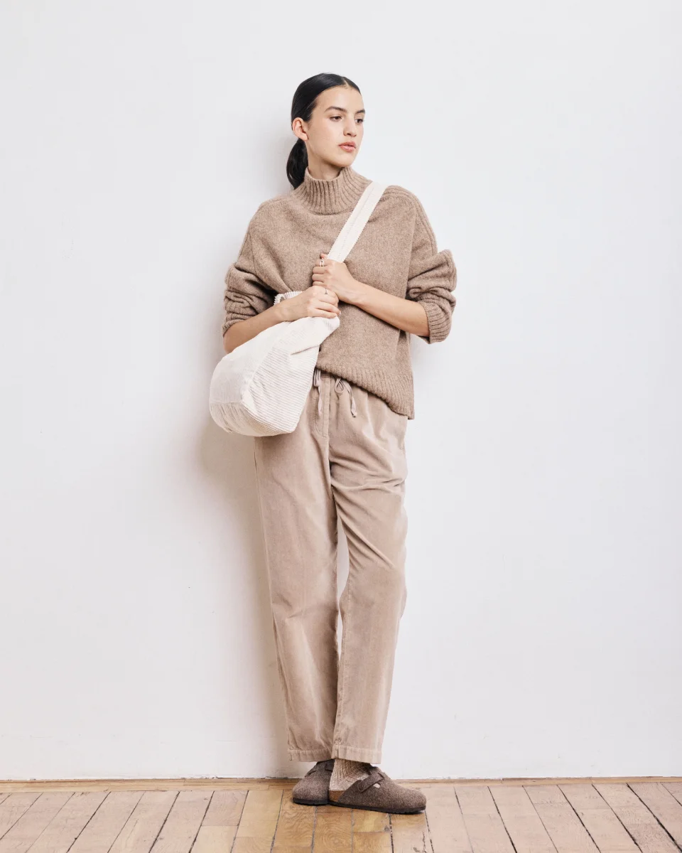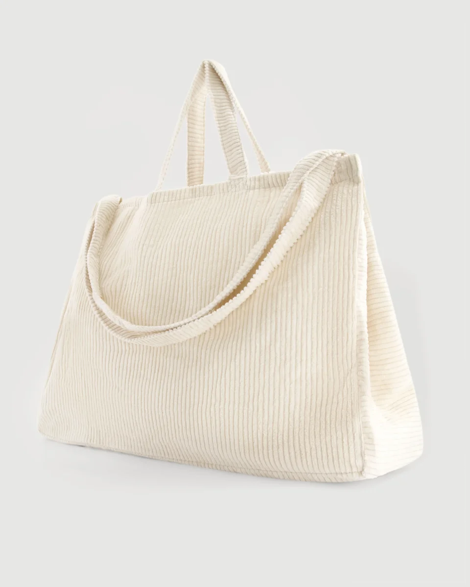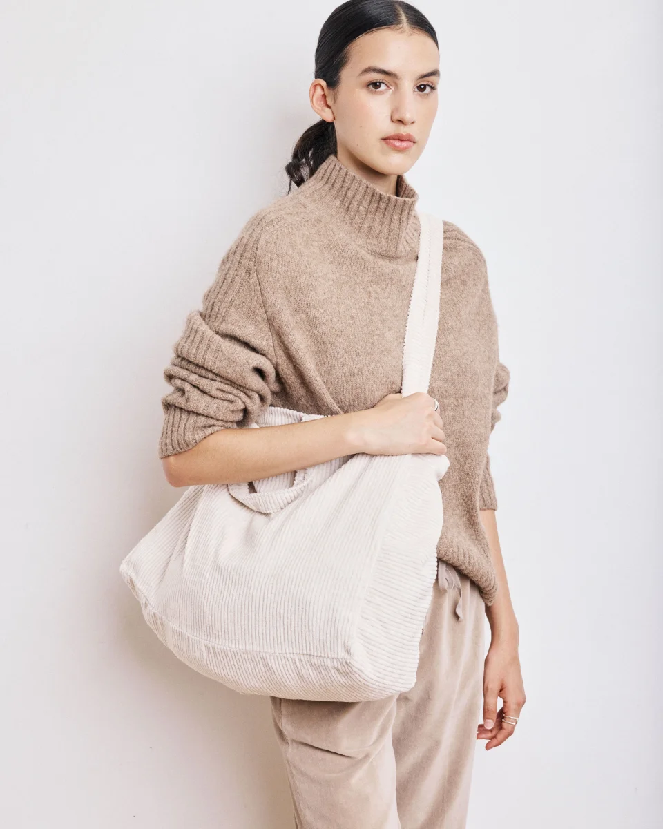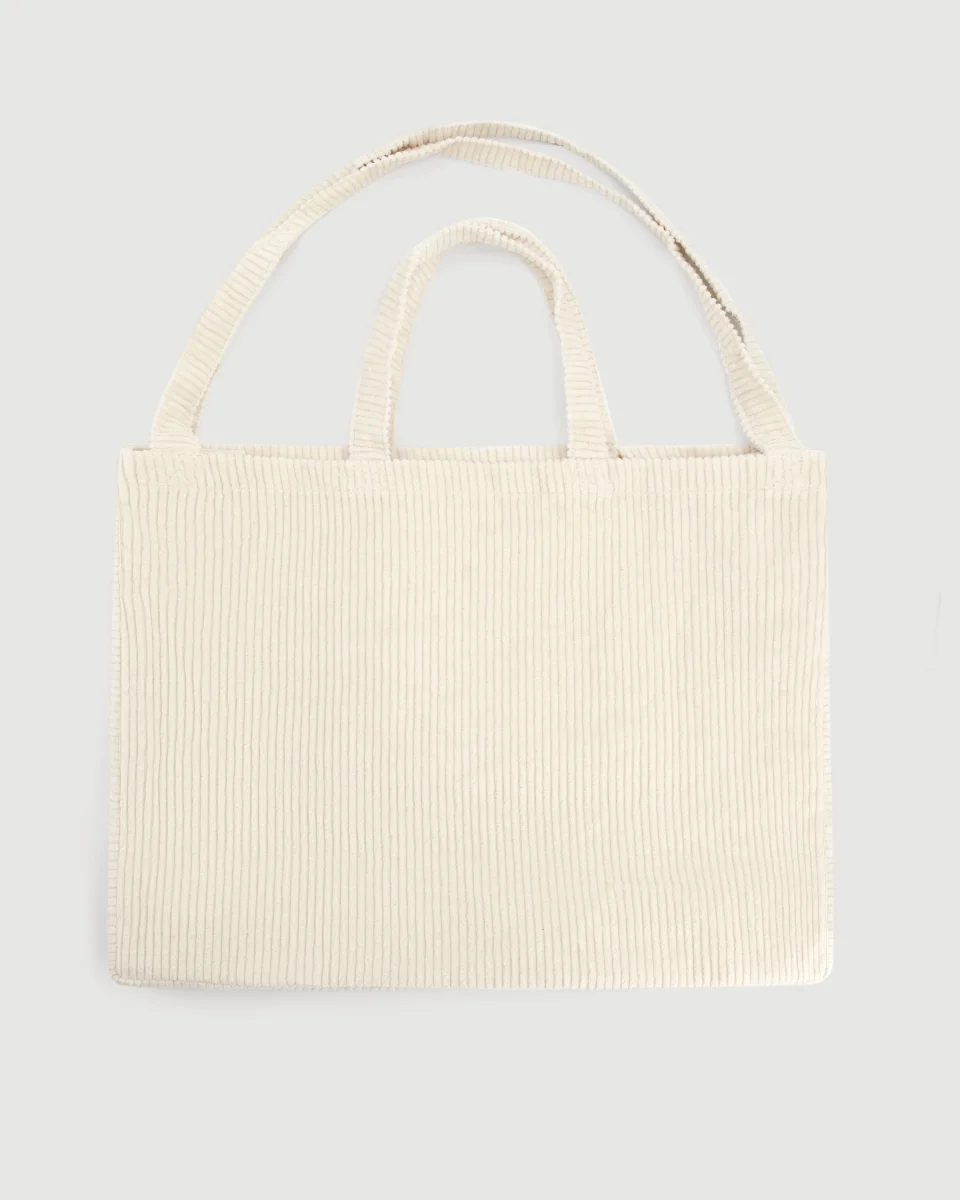 Sac cabas en velours côtelé à double anse de tailles différentes, petite poche intérieur.