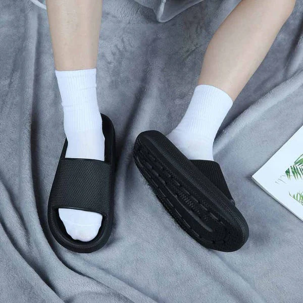 Imaginez glisser votre pied dans cette pantoufle à coussin thérapeutique qui se comprime et détend votre pied à chaque pas, offrant ainsi un soulagement des douleurs.