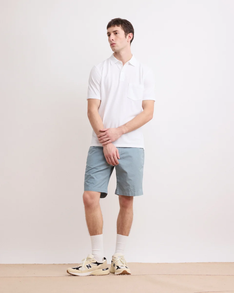 Short homme BYRON à la coupe regular avec poches italiennes sur les côtés et poches passepoilées boutonnées à l’arrière. Fermeture glissière et passants pour ceinture.