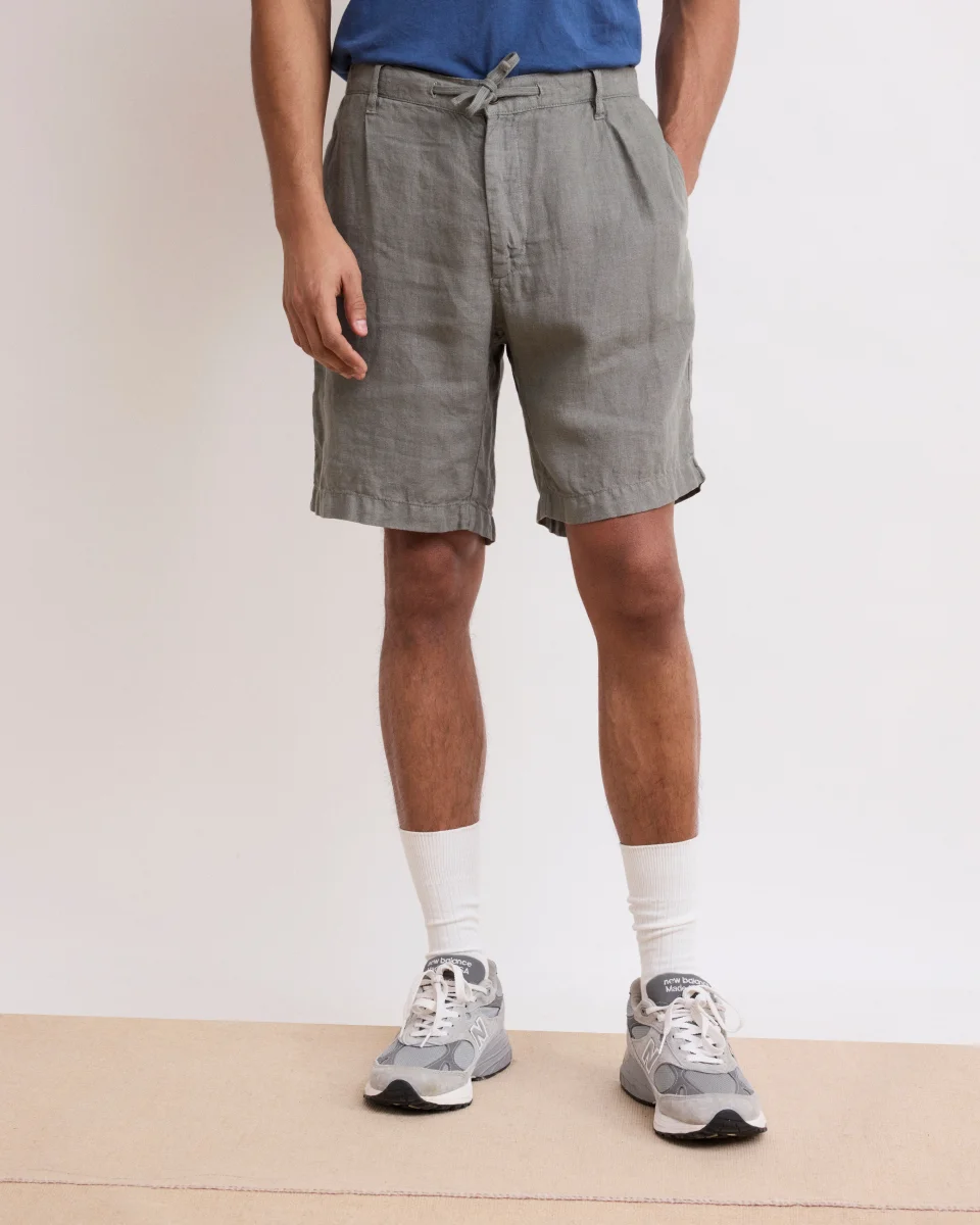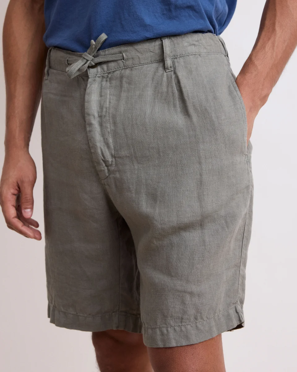 Short léger homme avec taille élastique et lien de serrage, poches italiennes sur les côtés et poches passepoilées au dos. Coupe droite.