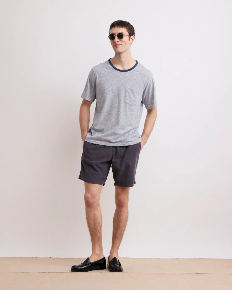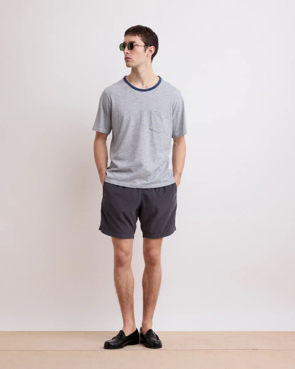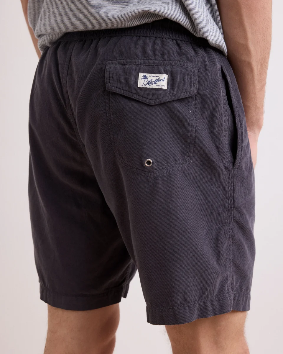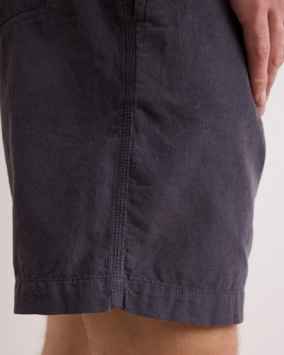 Short homme en velours côtelé à la taille elastiquée. Construit comme un maillot de bain, ce short possède des poches sur les côtés et une poche arrière. Sa coupe est toutefois plus longue que nos maillots de bain et il ne dispose pas de doublure filet intérieur.