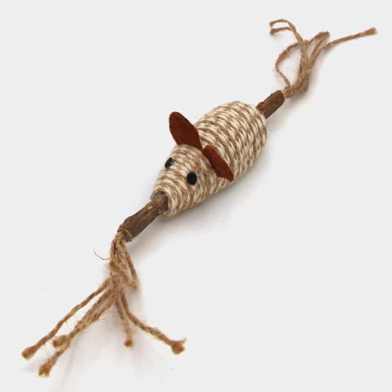 Jouet en forme de souris fixée à un bâton de matatabi qui stimulera votre chat par l’odeur qu’il dégage !