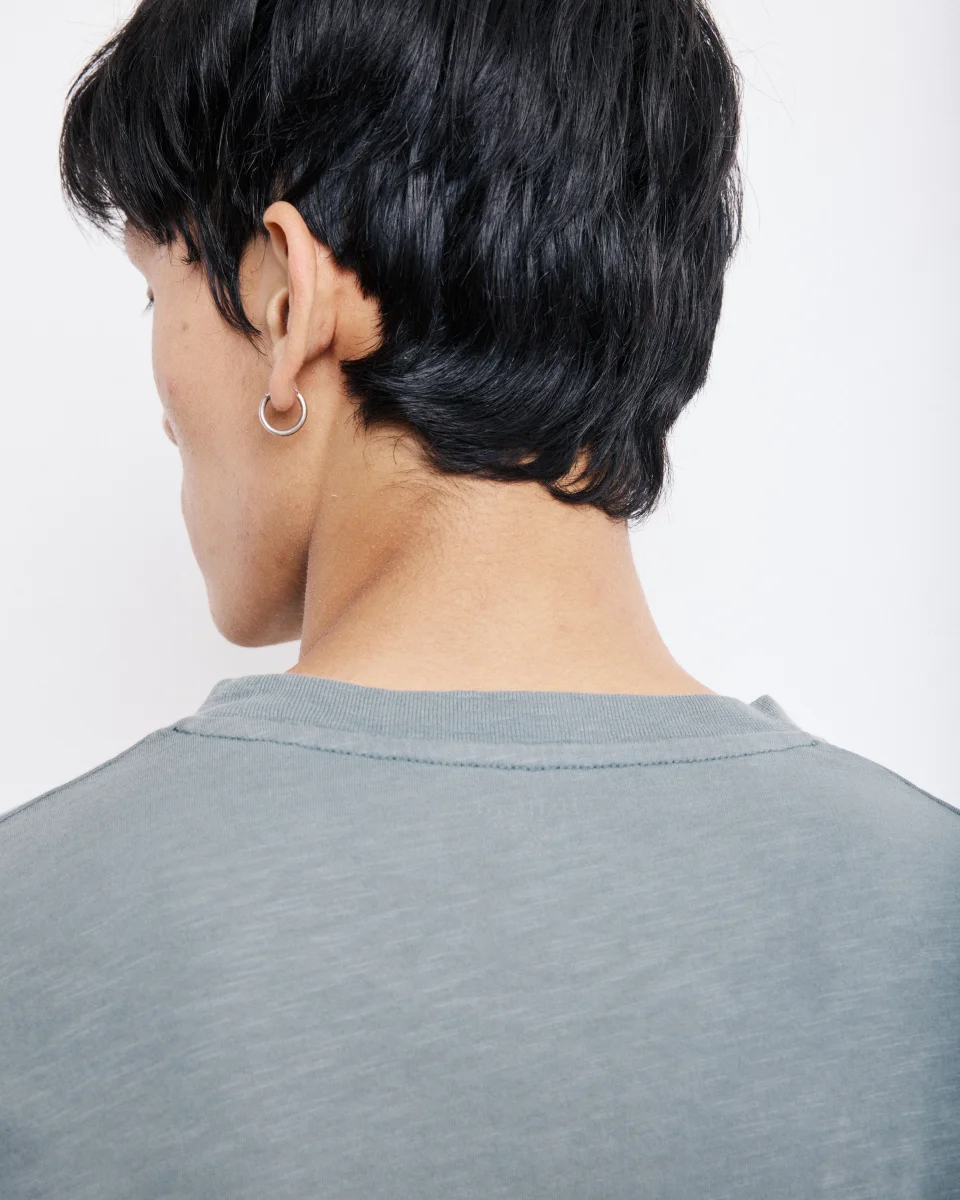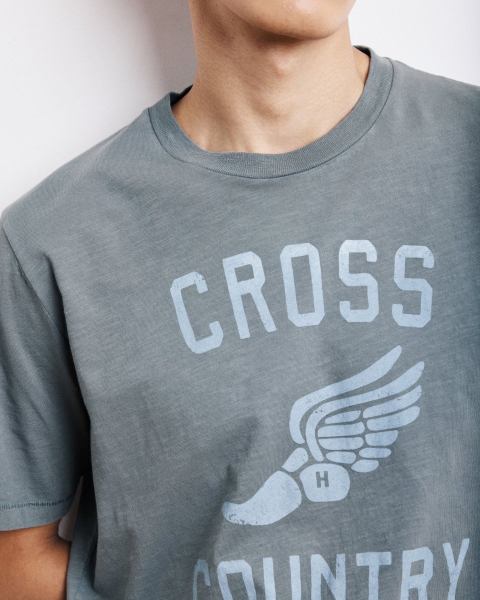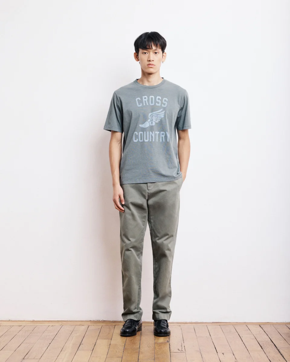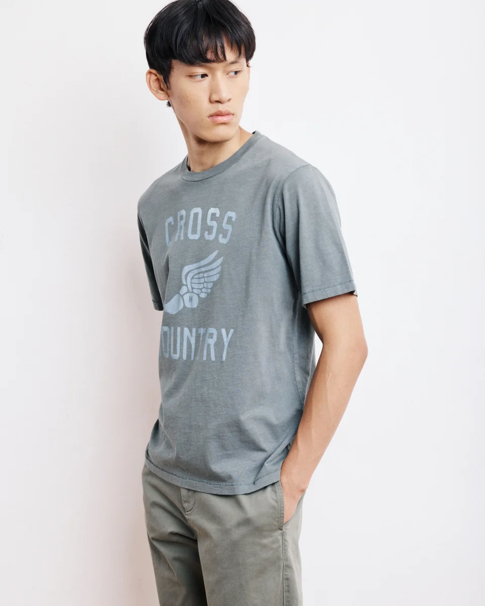 T-Shirt Homme en Coton Slub Imprimé Cross Country Vert de Gris