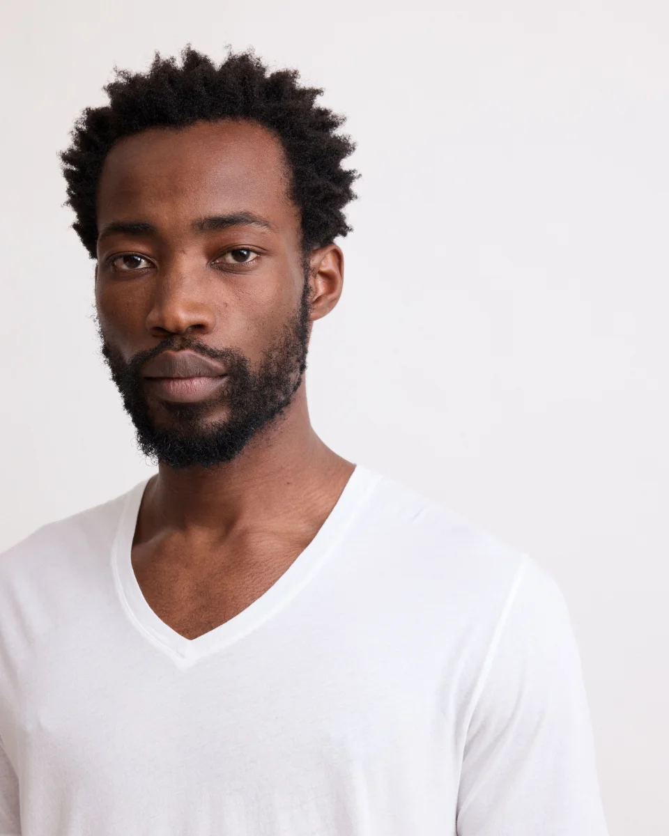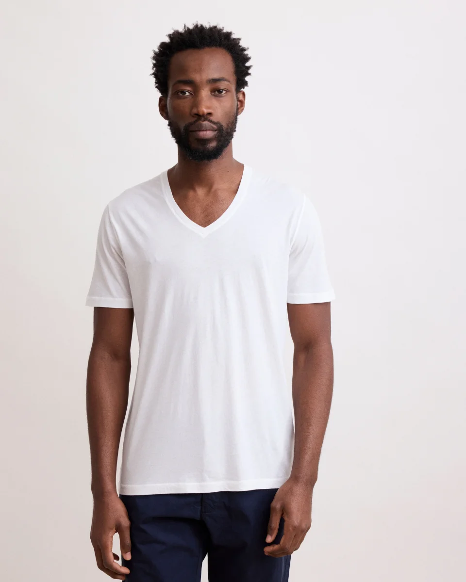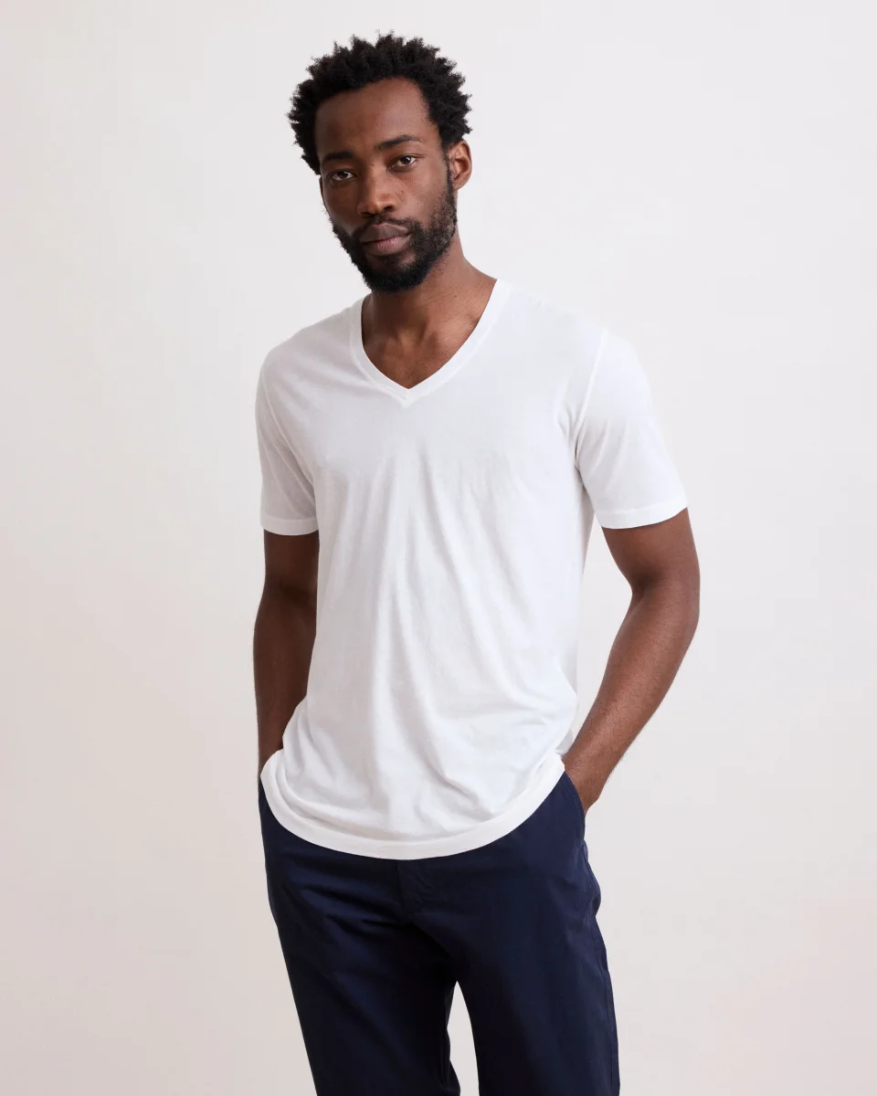 T-shirt homme uni en jersey de coton ultra-léger à col V.