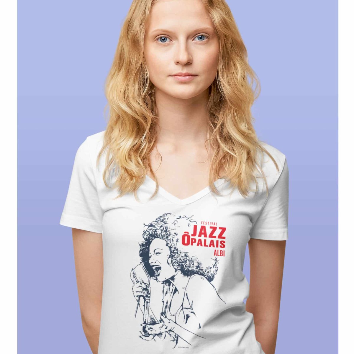 Ambiance jazzy avec ce tee-shirt col V en coton bio.
