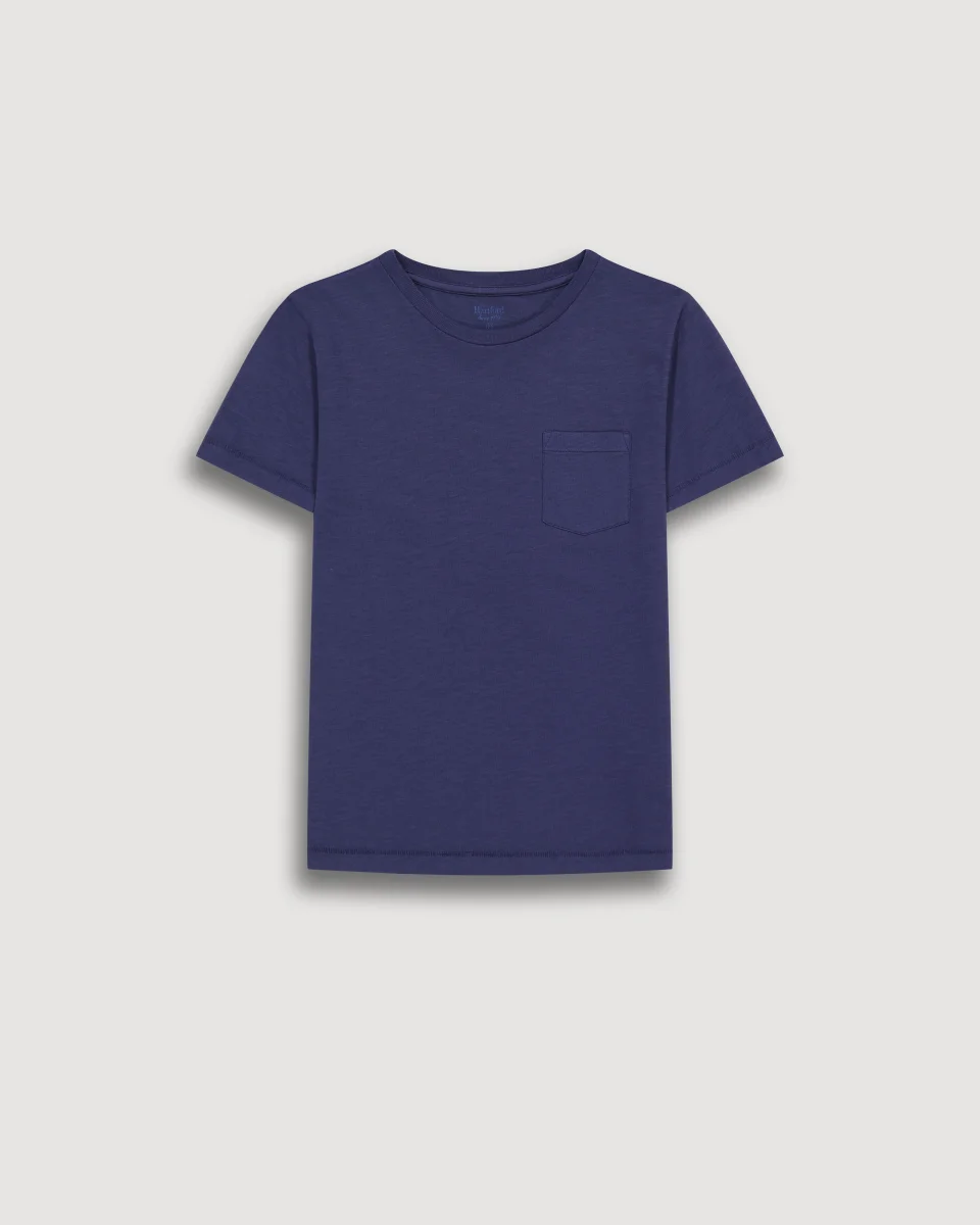 Tee-Shirt Garçon en Coton Slub Bleu Marine Pocket