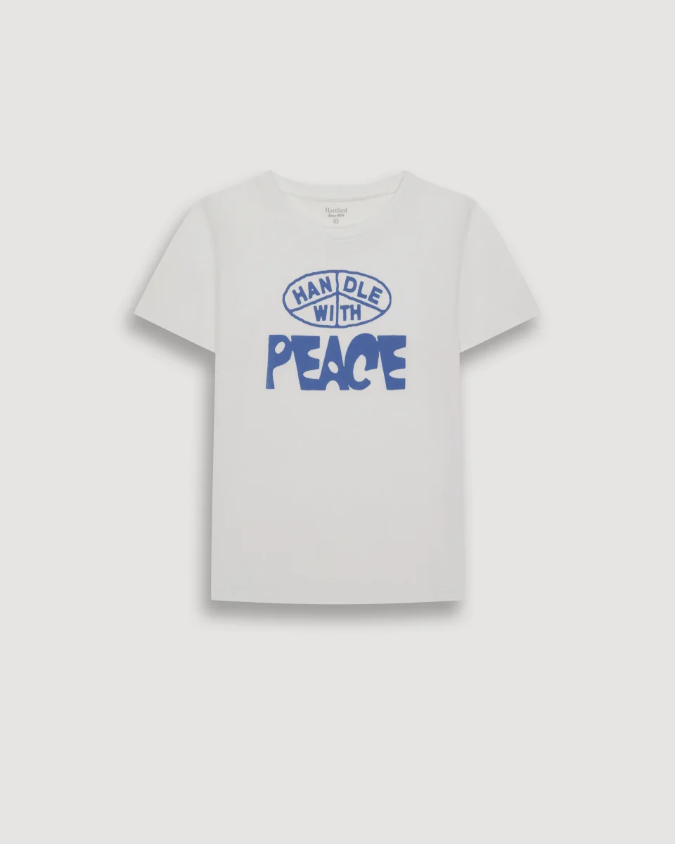 Tee-Shirt Garçon en Coton Slub Imprimé « Peace » Blanc