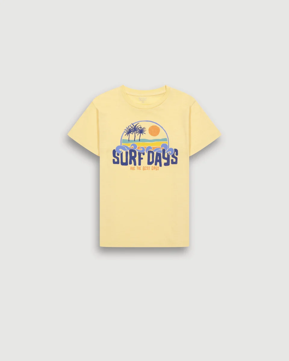 Tee-Shirt Garçon en Coton Slub Imprimé « Surf Days » Jaune