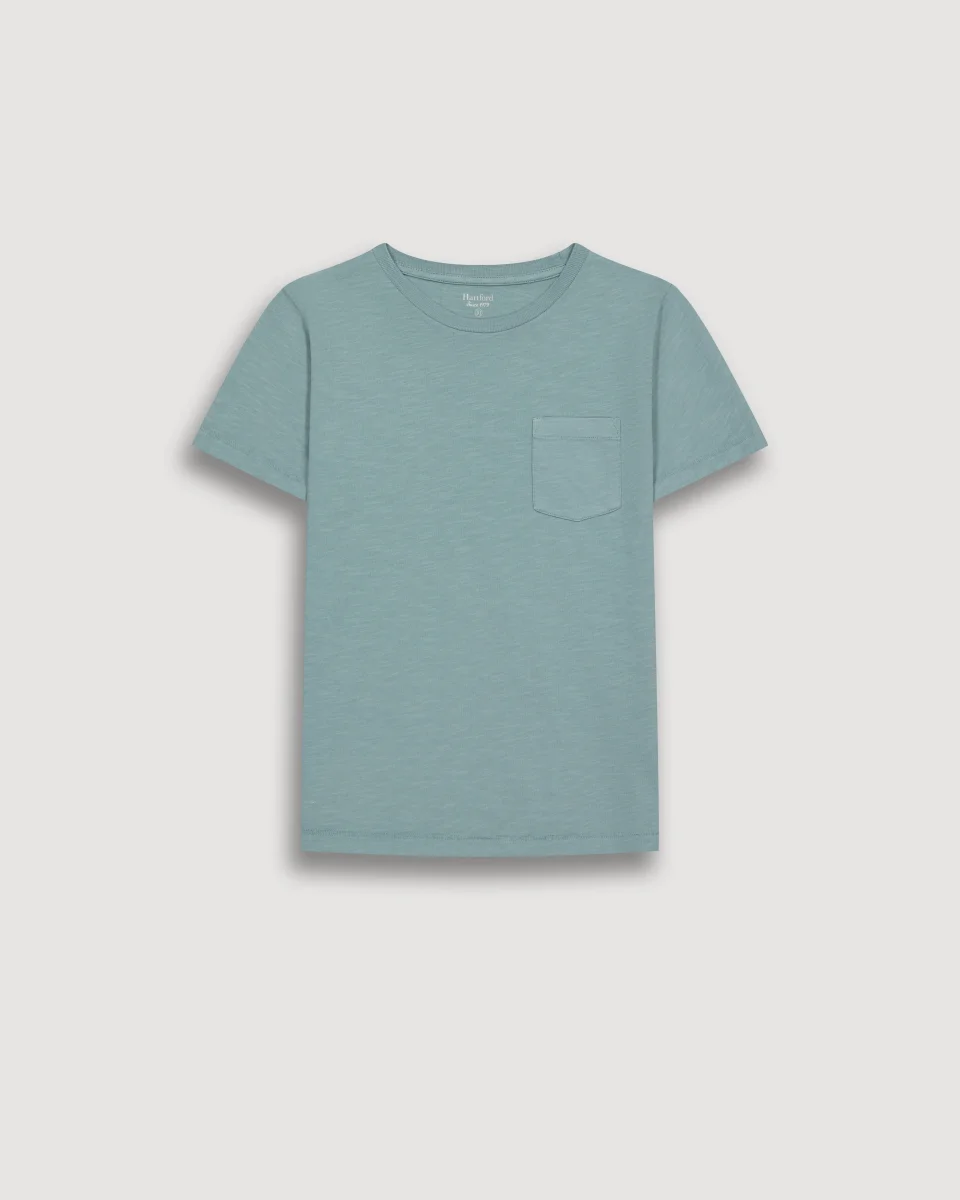 Tee-Shirt Garçon en Coton Slub Vert Celadon Pocket