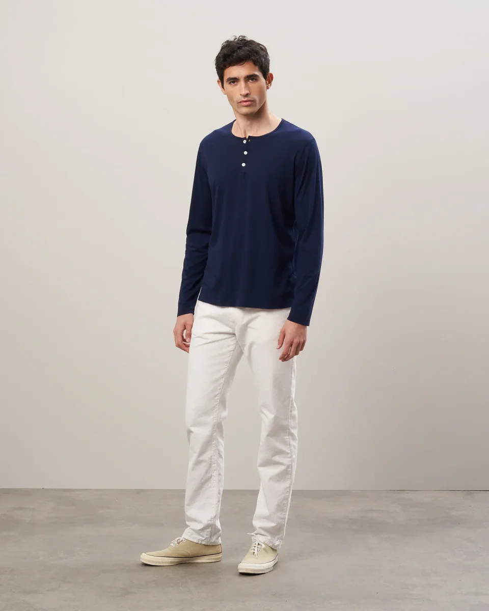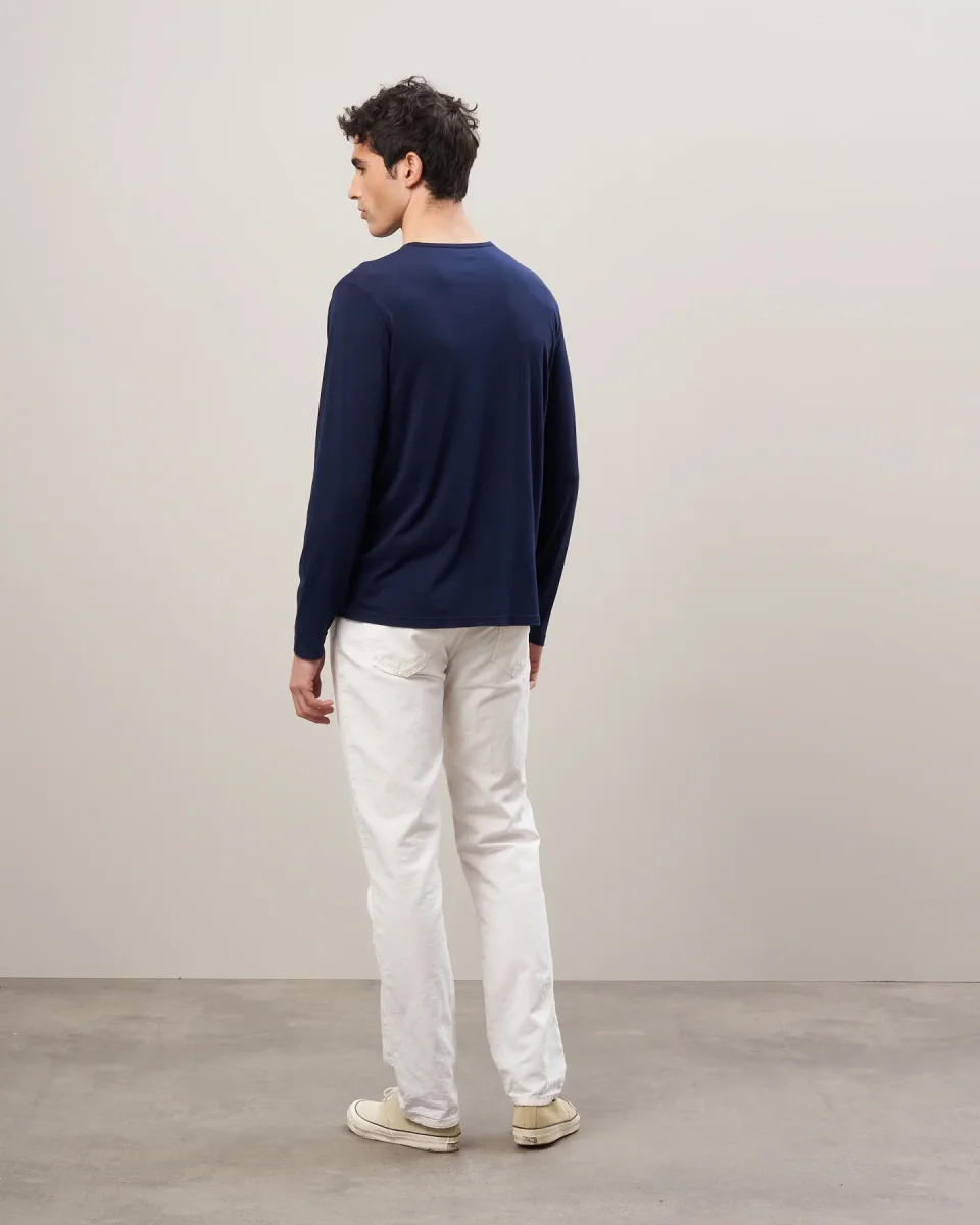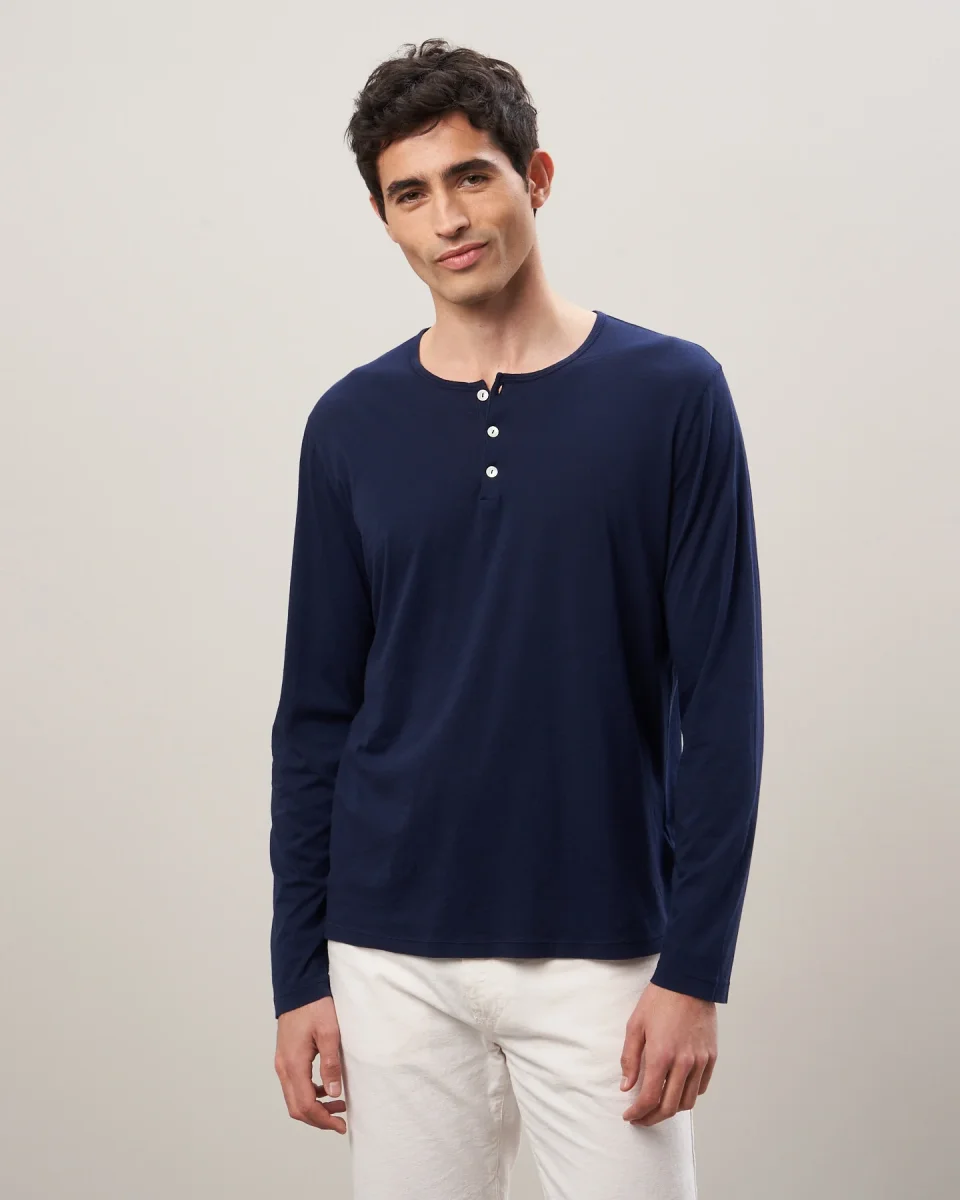 Tee Shirt Homme col tunisien en jersey léger Marine