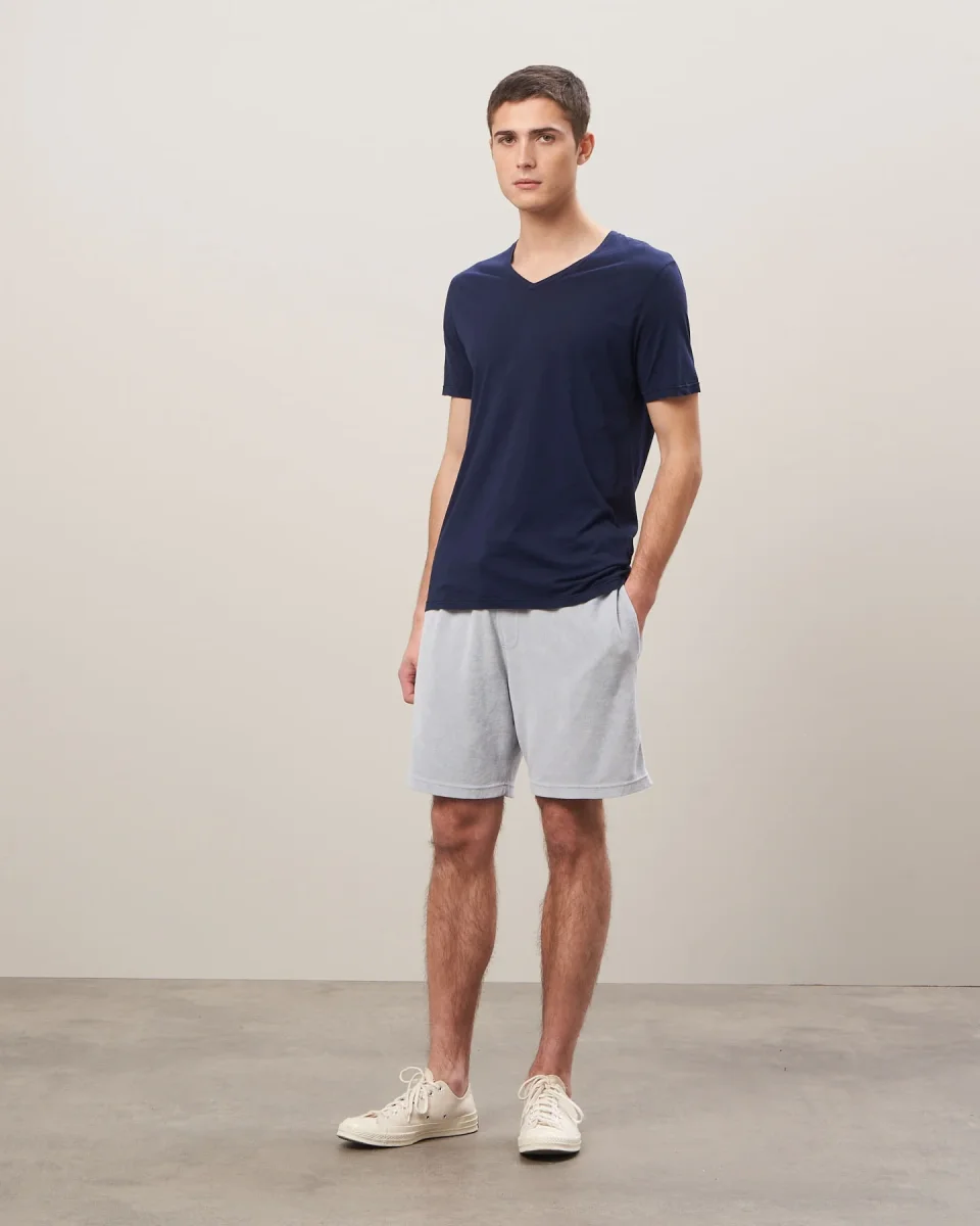 Tee-shirt homme uni en jersey de coton ultraléger à col V.