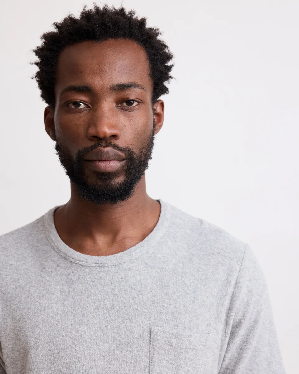 Tee-shirt homme en éponge à manches courtes avec poche poitrine et col rond.