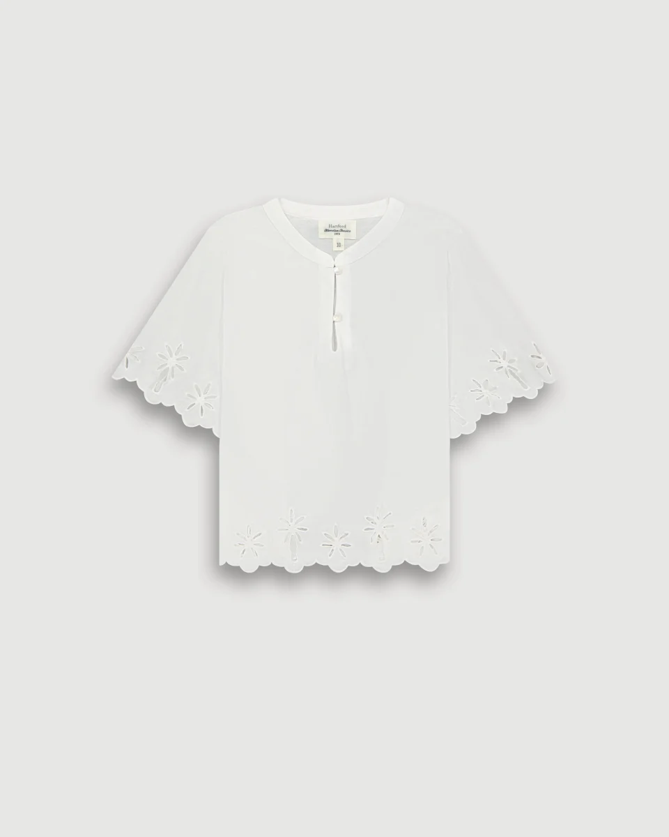 Top Fille en Voile de Coton brodé Ecru Hondo