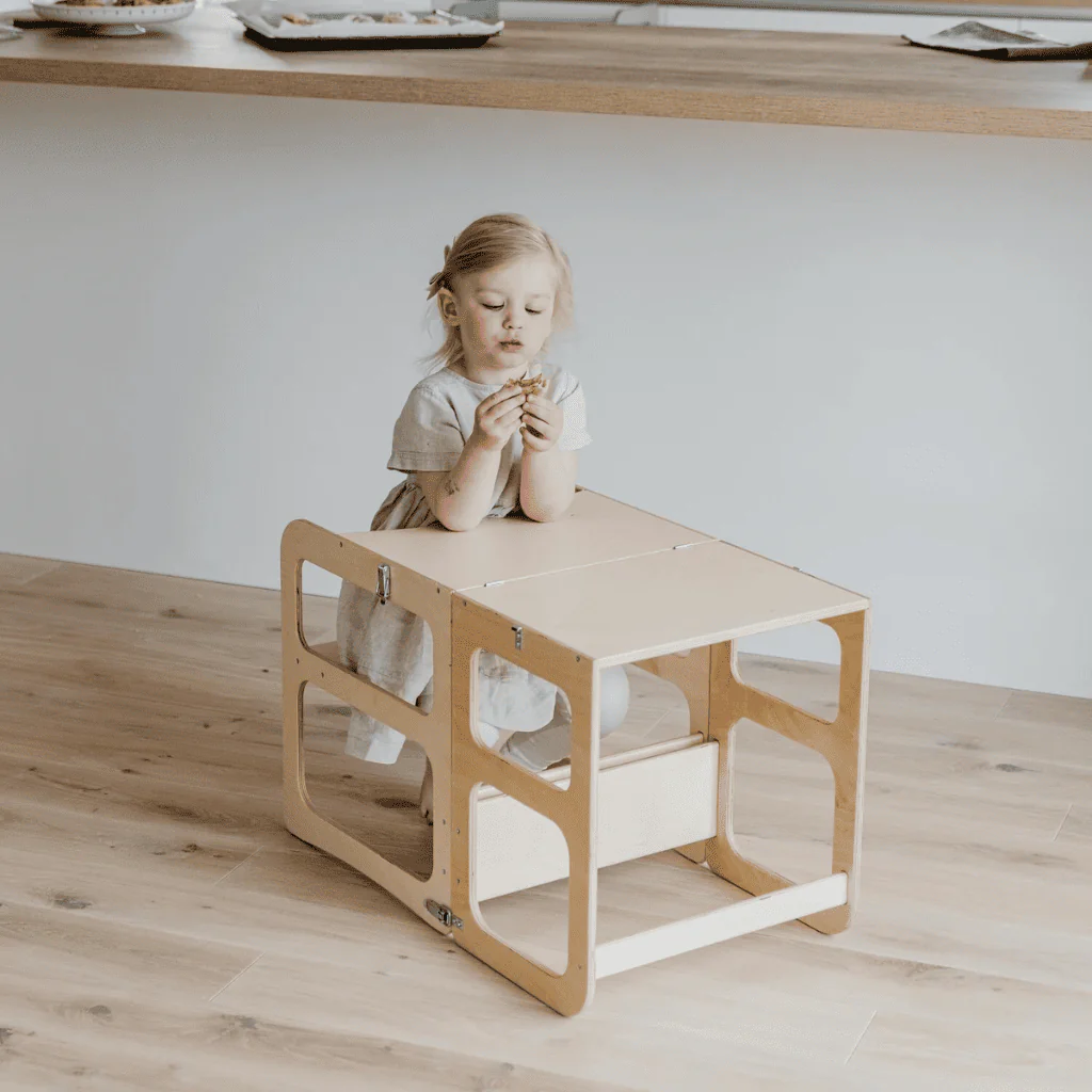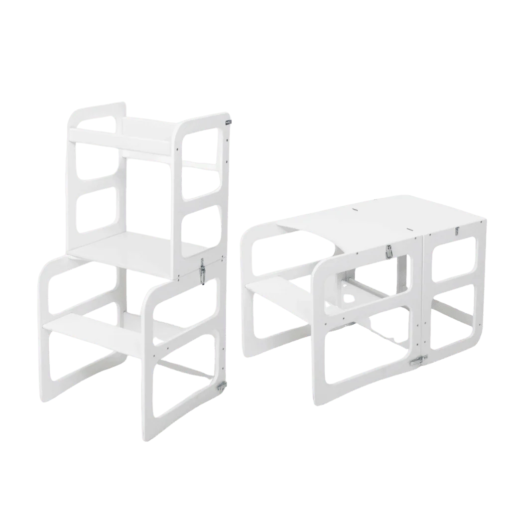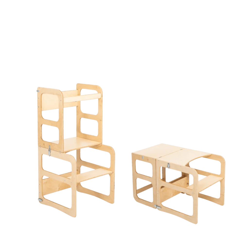 - Design convertible : tour d’apprentissage transformable en table et chaise