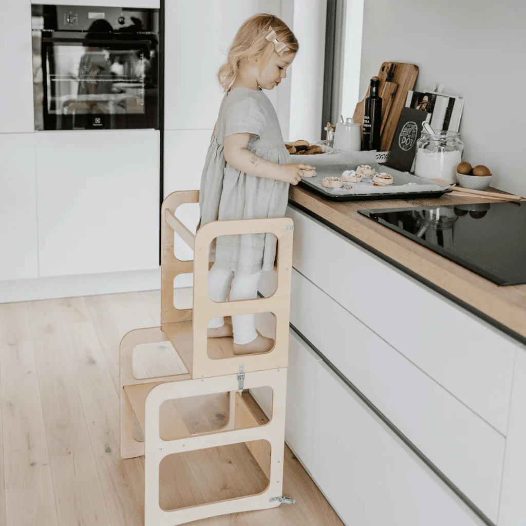 Éveillez la curiosité et l’autonomie de votre petit chef avec cette tour de cuisine convertible. Conçue pour grandir avec votre enfant, elle se transforme facilement en un ensemble table et chaise, pour cuisiner, bricoler ou jouer en toute sécurité.