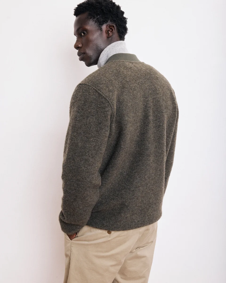 Veste Homme en Laine Bouillie Vert Militaire Bomber