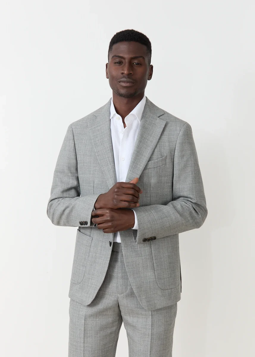 La veste Toso grise vous distingue avec le tombé impeccable et le grain si particulier de son étoffe 100% laine, tissée en Italie par une maison aux créations très haut de gamme : Bonotto.